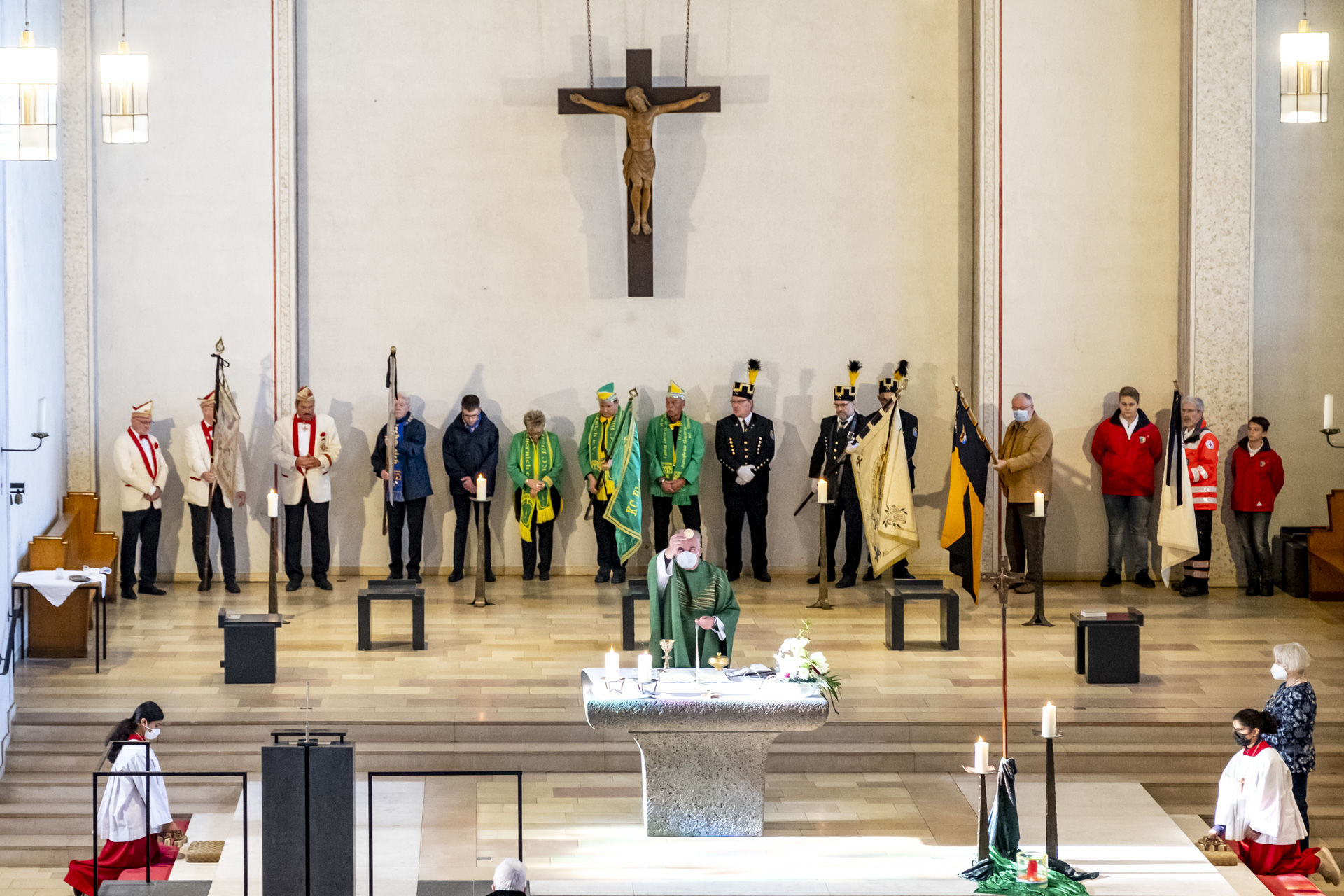 Um dieses Zeichen zu setzen, hatten Vereinskartell und Bundeswehr Kränze am Ehrenmal niedergelegt. Die Bergkapelle umrahmte das Gedenken musikalisch. Der Volkstrauertag in Mechernich hatte traditionsgemäß mit dem Gottesdienst in der Pfarrkirche St. Johannes Baptist begonnen. Daran nahmen die Fahnenabordnungen der Vereine und Institutionen ebenso teil, wie am anschließenden Schweigemarsch zum Ehrenmal.