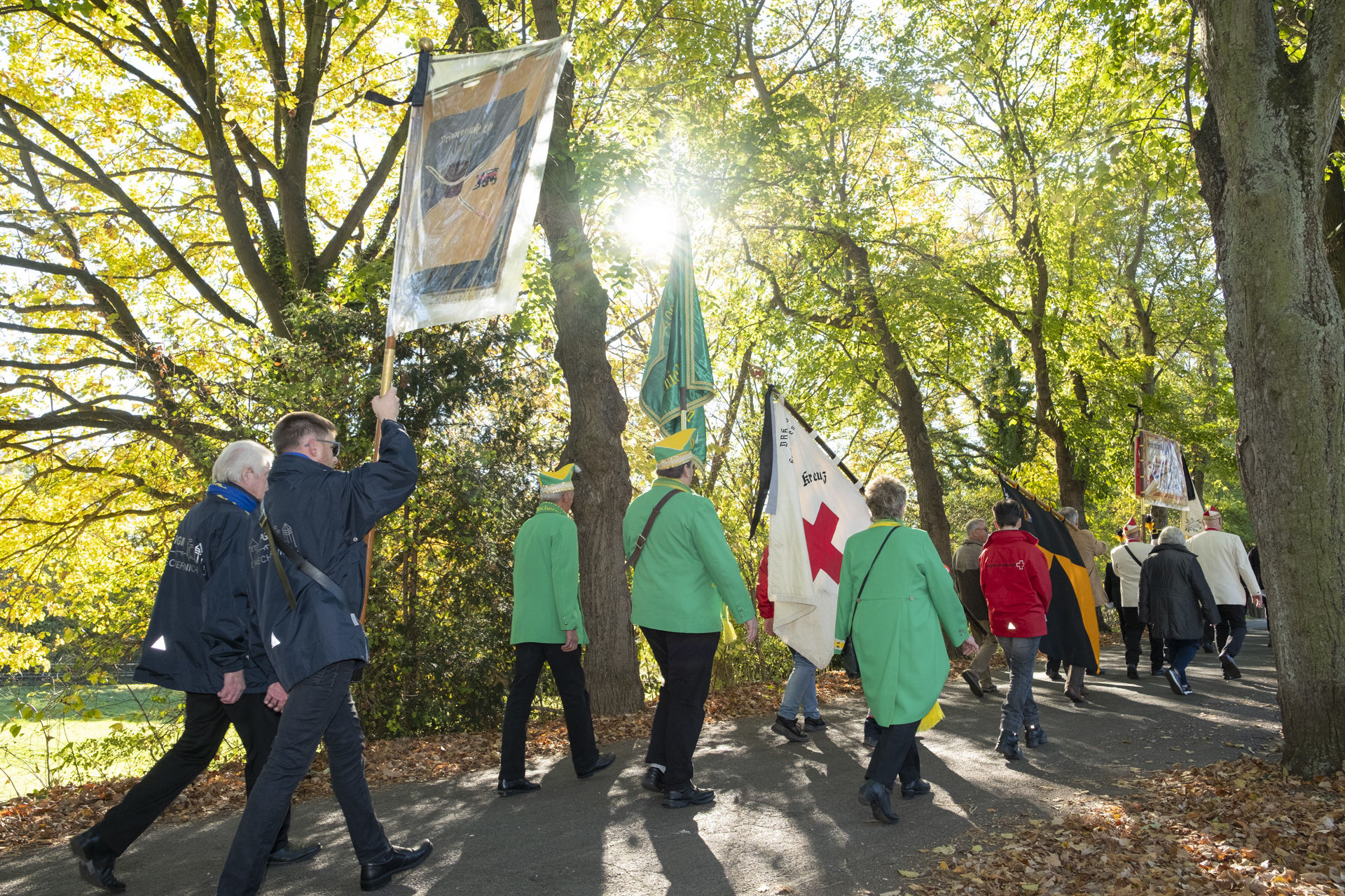 Mechernich – „Kamelle.“ Der Ausruf ist ein rheinischer Reflex, wenn Karnevalisten durch die Straße ziehen. Doch an diesem Sonntag sollte der Ruf nach Süßigkeiten, die einige Passanten etwas scherzhaft von sich gaben, so gar nicht passen. Denn die Abordnungen von Prinzengarde, Festausschuss, KC Bleifööss, Barbara-Bruderschaft, Deutschem Roten Kreuz und Kolpingsfamilie kamen gerade vom Ehrenmal zurück, wo sie zum Volkstrauertag den Opfern von Krieg, Gewaltherrschaft und Völkermord gedacht hatten.