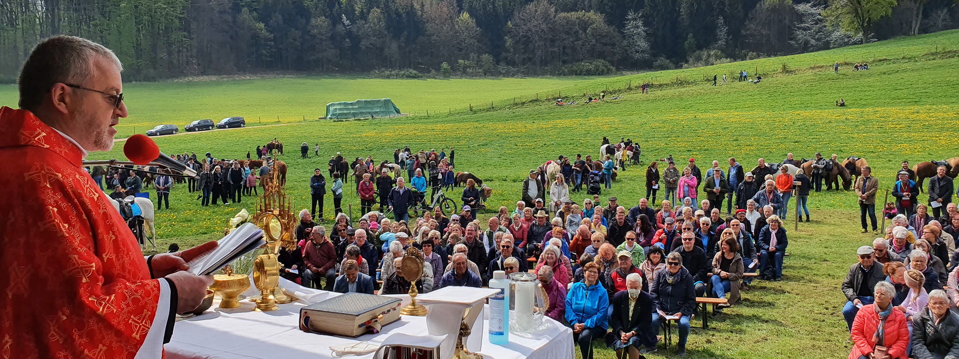 Nach zwei Jahren Unterbrechung wieder traditioneller Sankt-Georgs-Ritt in Kallmuth – Festprediger Pater Wieslaw Kaczor (63) SDS: „Jeder darf sich etwas von Gott wünschen…“ – Das Rote Kreuz ist wie immer dabei, um über Gesundheit und Sicherheit Hunderter Teilnehmer zu wachen