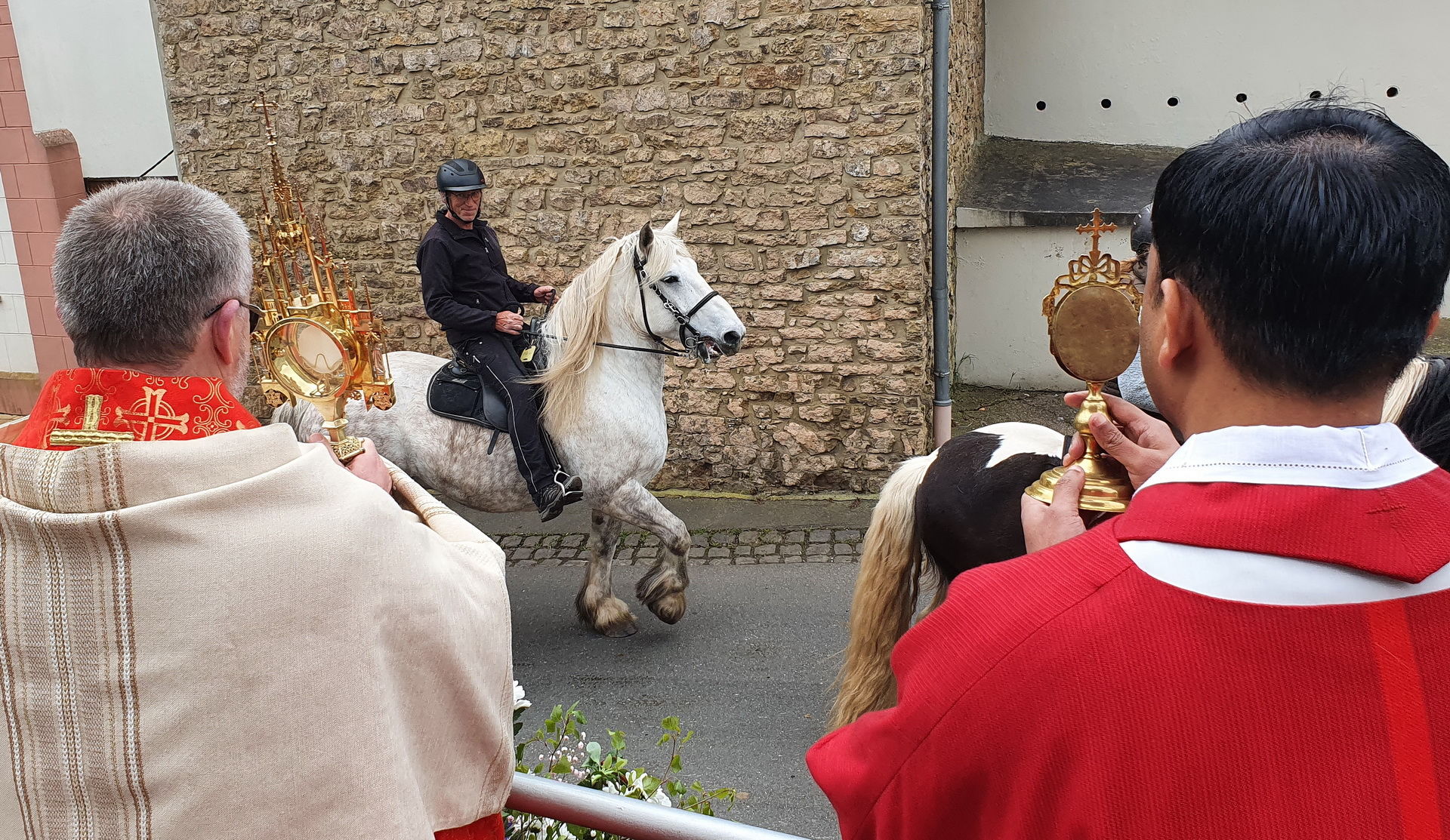 Für Diakon Lang, der selbst lange Jahre mit seiner Kaltblutstute „Hera“ vor dem Sakramentswagen her geritten war, hatte Wieslaw Kaczor das „Gebet eines Pferdes“ mitgebracht, das Lang vortrug. Darin bittet der Vierbeiner um gute Behandlung, Einfühlungsvermögen, etwas Rücksicht, die Erwiderung seiner Treue und einen gnädigen Tod: „Lass mich dies erbitten und glaube nicht, dass es mir an Ehrfurcht gebricht, wenn ich das in seinem Namen tue, der in einem Stall geboren ist…“