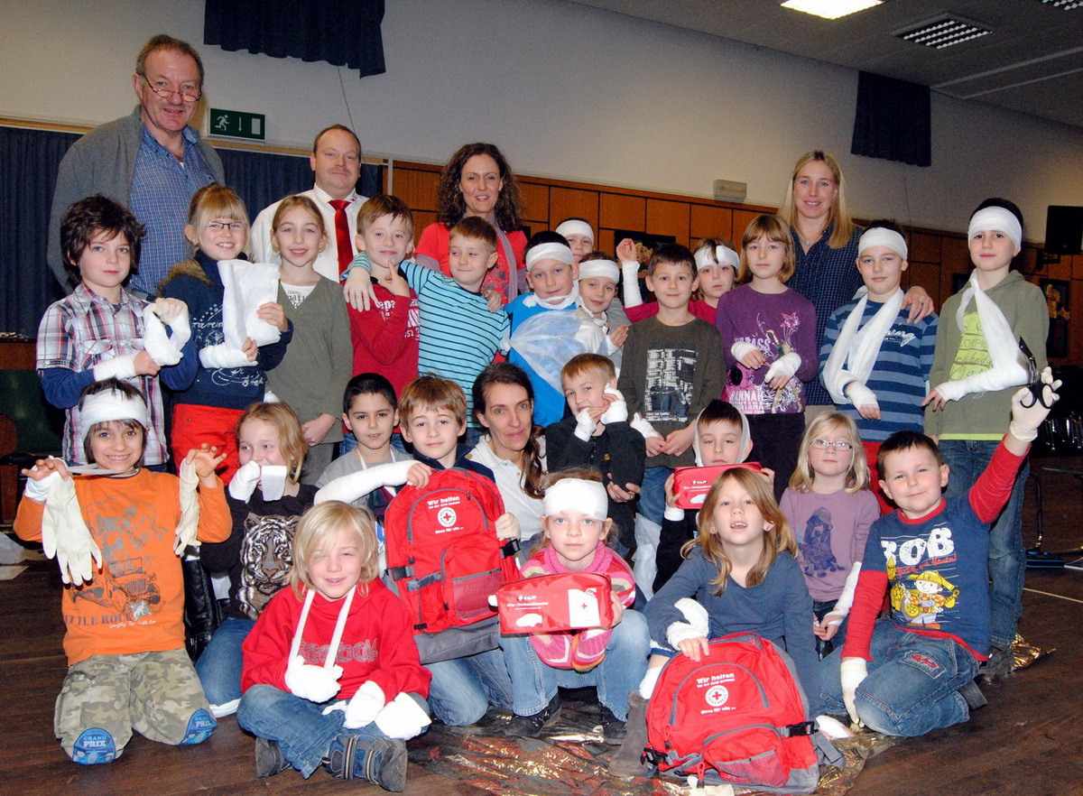 Wie Kreisgeschäftsführer Rolf Klöcker ergänzt, geschieht das bereits erfolgreich an der Katholischen Grundschule in Kommern. Während die vom Roten Kreuz in Erster Hilfe ausgebildeten Schüler an den weiterführenden Schulen mittlerweile gang und gäbe sind, ist die Grundschule in Kommern die einzige kreisweit, die einen Schulsanitätsdienst hat. In Anbetracht des jungen Alters der Grundschüler achten Sascha Suijkerland und seine Mitarbeiter genau darauf, was ihnen zuzumuten ist. „Die Frage, was Kinder in diesem Alter verkraften können, bestimmt unsere Arbeit mit ihnen“, so der Gemeinschaftsleiter zu den besonderen Herausforderungen, die auch für die Kindergruppe des Jugendrotkreuzes gelten wird.