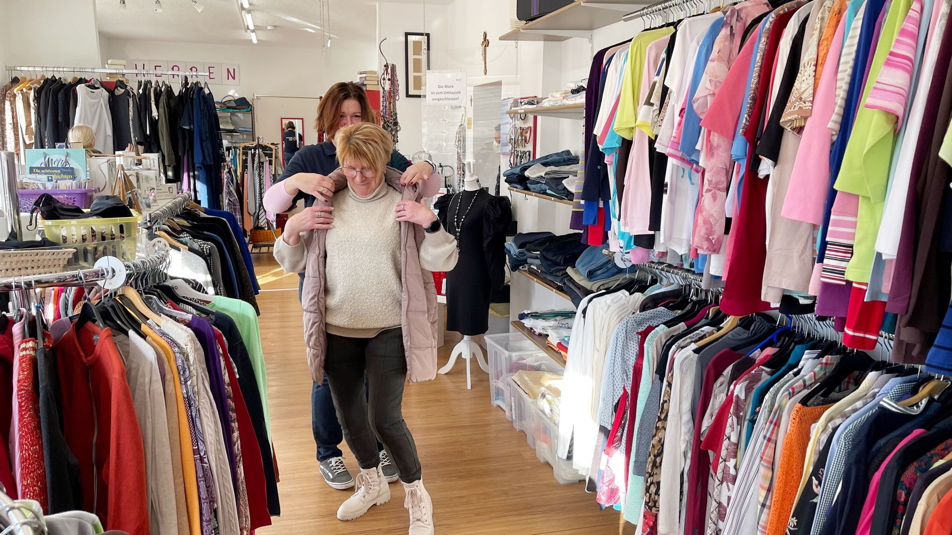 Es landet traditionell nicht nur Textiles in den Containern des Roten Kreuzes, sondern auch eine Menge Müll – Zu Beginn der Corona-Krise schnellten Kleiderspenden in die Höhe – Saisonal einzelne Kleidungsstücke gezielt aussortieren und direkt zu den Kleiderkammern bringen – 40 Prozent kommt in den Second-Hand-Shop – 60 Prozent landet im Schredder für Putzlappen und Isoliermaterial