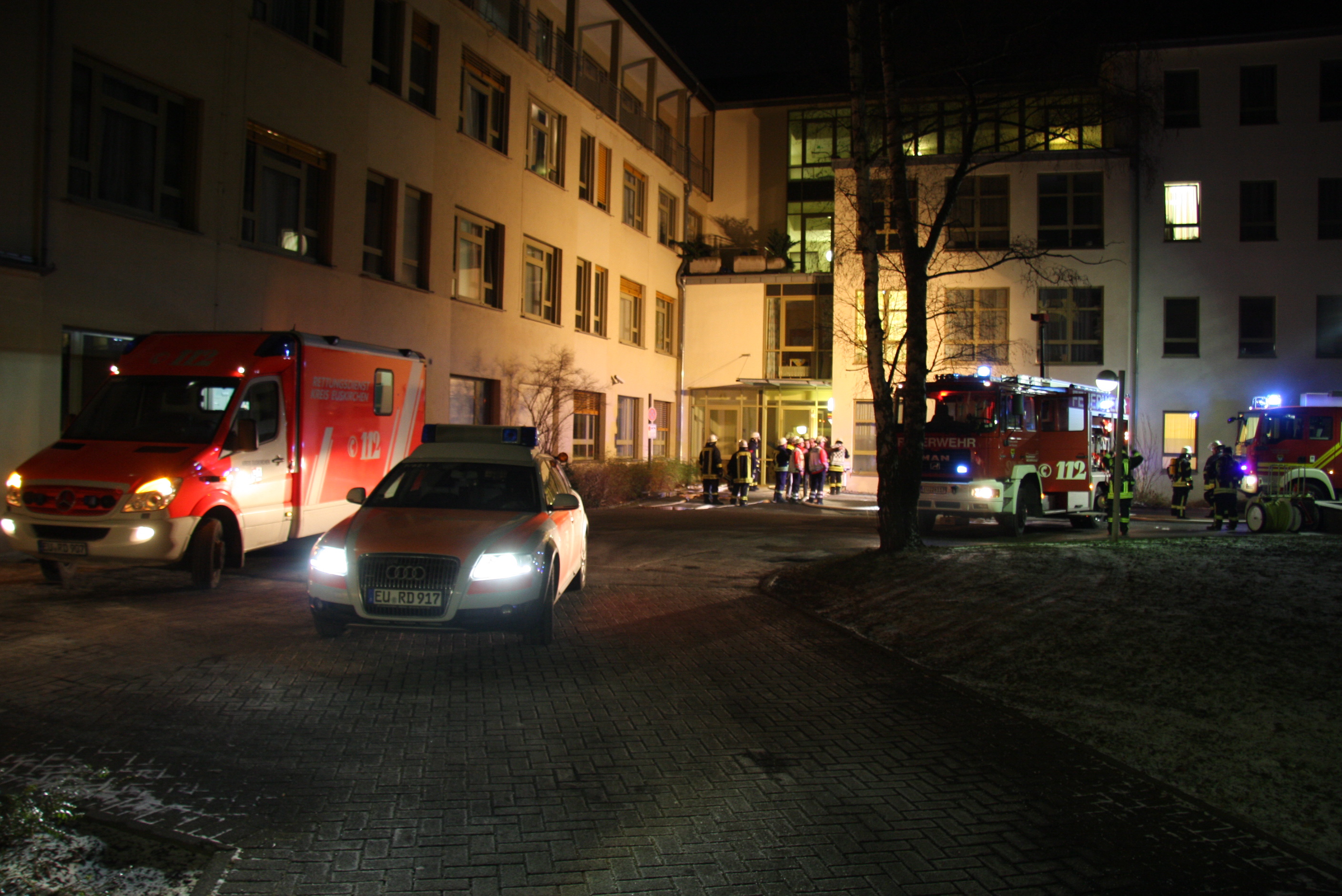 Mechernich - Ein Feuer im Kreiskrankenhaus Mechernich hat am Mittwochabend für Großalarm für die Rettungskräfte im Kreis Euskirchen gesorgt. Nach ersten Erkenntnissen der Polizei brach das Feuer im Keller des Westflügels aus. Die Feuerwehr hatte den Brand schnell unter Kontrolle. Infolge des Feuers mussten mehrere Stationen geräumt und verlegt werden.
