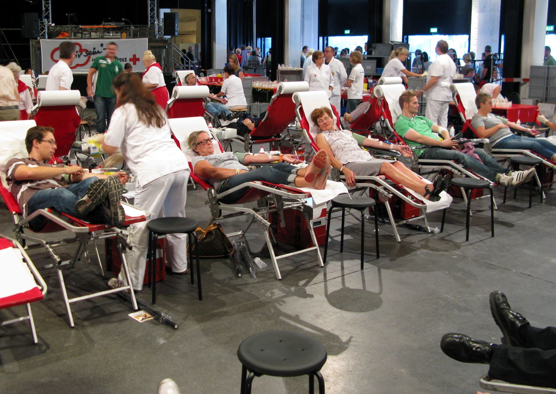 8. Blutspende-Marathon des Roten Kreuzes in der TON-Fabrik der Firmenicher Kultur- und Freizeitfabrik Zikkurat am Sonntag, 11. August, ab 11 Uhr - Teilnehmern winken Preise und Geschenke – Bei einer Pressekonferenz warben die Partner dieses Blutspende-Großevents um rege Teilnahme – Im vergangenen Jahr kamen 700 Spender, darunter 154 zum ersten Mal – DJs werben unter jungen Leuten - Landrat, Kreisvorsitzender, Bürgermeister und Beigeordneter gehen ebenfalls zum kollektiven Aderlass