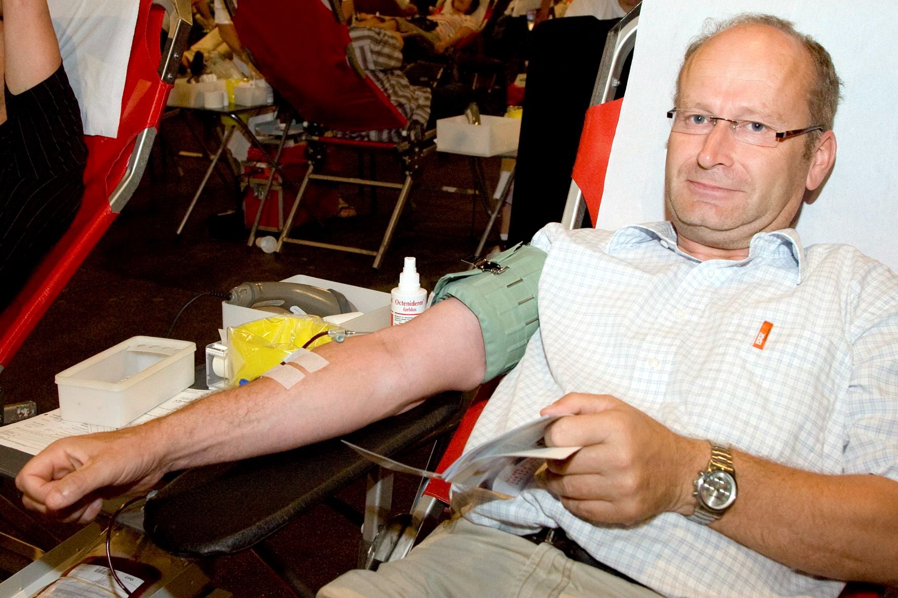 Laut Blutspendedienst West sind 80 Prozent der Bundesbürger im Laufe ihres Lebens mindestens einmal auf ein medizinisches Produkt angewiesen, das aus der Blutspende stammt. Ein Grund, warum prominente Blutspender wie Bürgermeister Dr. Hans-Peter Schick und Landrat Günter Rosenke auch am Sonntag, 11. August, wieder mit gutem Beispiel vorangehen.