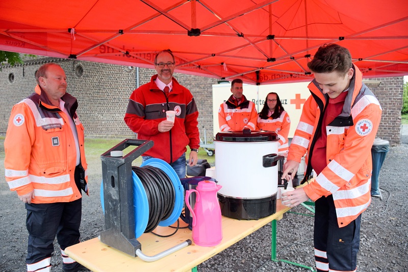Überhaupt, die Logistik für das Heißgetränk an der Straße, das ist für das Rotkreuzteam keine Schwierigkeit. Bei Großeinsätzen hat man schon ganz andere Herausforderungen gemeistert. Routiniert unterstützt schließlich das Rote Kreuz im Kreis Euskirchen sogar bei Großeinsätzen die Feuerwehr und andere Einsatzkräfte mit kalten und warmen Getränken oder auch mit Frühstück und warmen Essen, so zum Beispiel in Schleiden beim Brand des städtischen Gymnasiums.