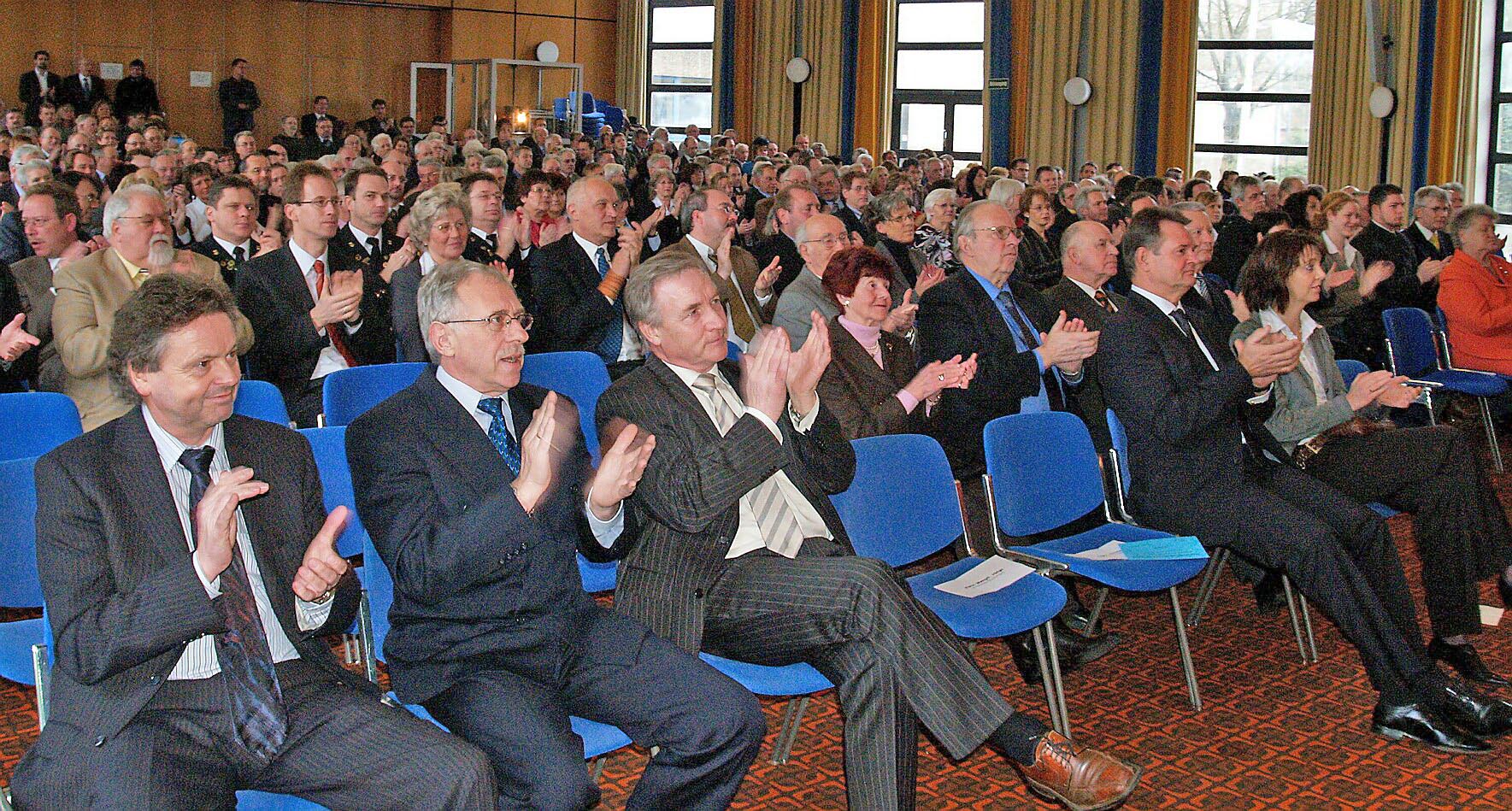 Unter den 450 Gästen des diesjährigen Neujahrsempfangs befanden sich wieder viele exemplarisch ausgewählte Bürgerinnen und Bürger, die sich aus unterschiedlichen Gründen durch besonderes Engagement hervorgetan hatten. Auch Stadtrat und Verwaltung, Vertreter von Firmen, Einrichtungen und Organisationen waren dabei.