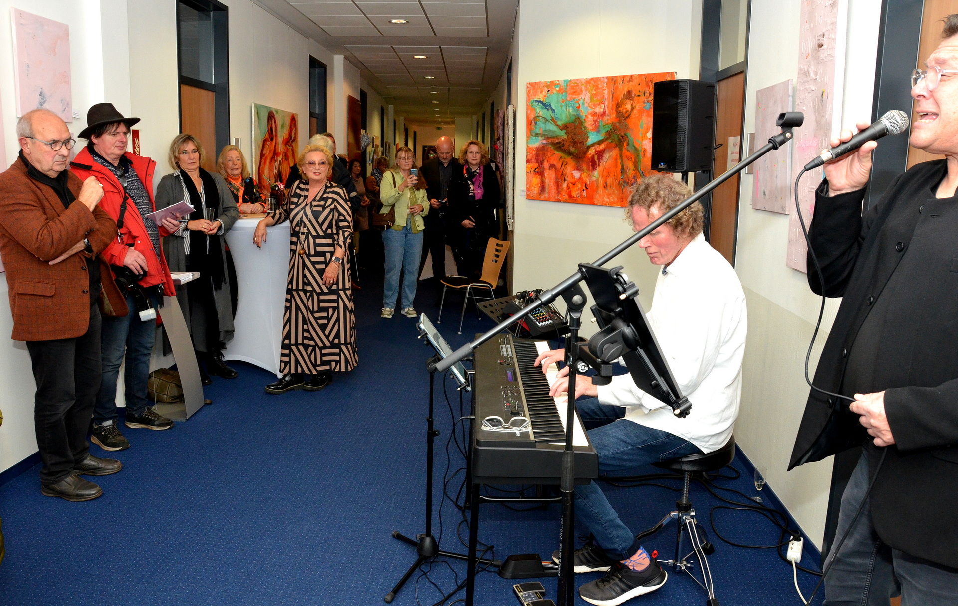 Musikalisch begleitet wurde die Vernissage von Uli van Staa (Klavier) und Pete Bauchwitz (Gitarre und Gesang). Letzterer macht bereits seit über 50 Jahren Musik, hat mit sämtlichen großen „Big Bands“ des Landes gearbeitet, war bei zahlreichen bekannten Jingles mit dabei und sogar sieben Jahre lang bei den Kult-Kölner „Höhnern“. Bauchwitz und van Staa spielten beeindruckend authentisch Jazz, Swing und die Lieder Frank Sinatras.