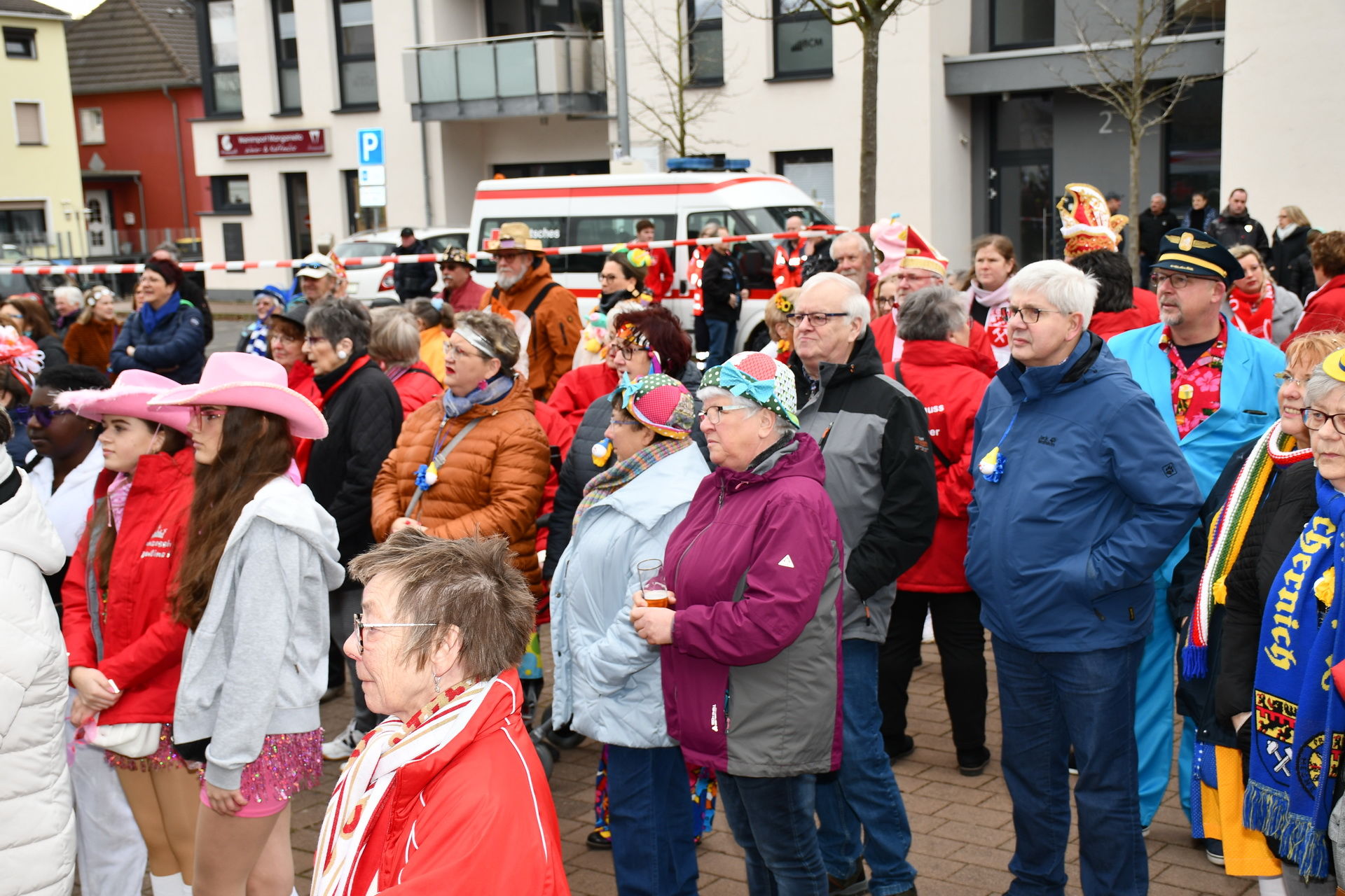 Gut hörbar war auch nach Thomas Hambachs Wasserbombenvolltreffer der Musikzug der Prinzengarde, der bereits seit 40 Jahren beim Sturm aufs Rathaus den Ton angibt. Auch Altkommandeur Addy Sechtem wurde in der Nähe des Prinzengarden-Geschützes gesichtet. Es gab im und vor dem Rathaus Kölsch und Alkoholfreies. Die Stimmung war schön, aber gefasst. Viele Jecken feierten anschließend in Lokalen, der Dreifachturnhalle und vor allem auf den Dörfern und zum Teil auch ausgelassen weiter „Wieverfastelovend“.