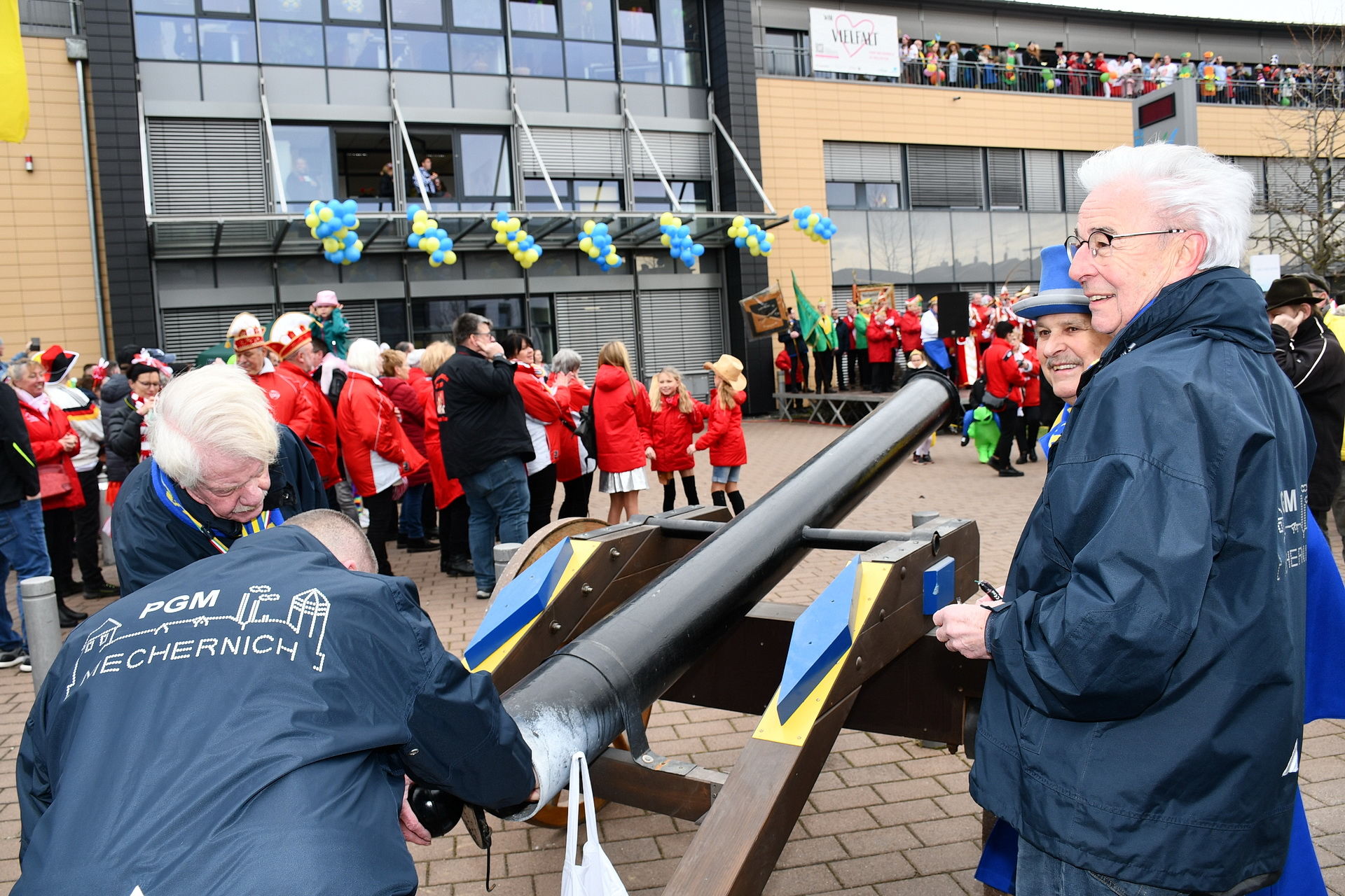 Nur das Geschütz der Prinzengarde, die in der laufenden Session 50. Geburtstag feiert, verschaffte sich Gehör wie eh und je. Dieses Jahr blieben die vor der Corona-Pandemie regelmäßig mit Böllerschüssen Kommerner Schützen und Freischärler beantworteten Artillerieattacken allerdings ohne jede Gegenwehr.
