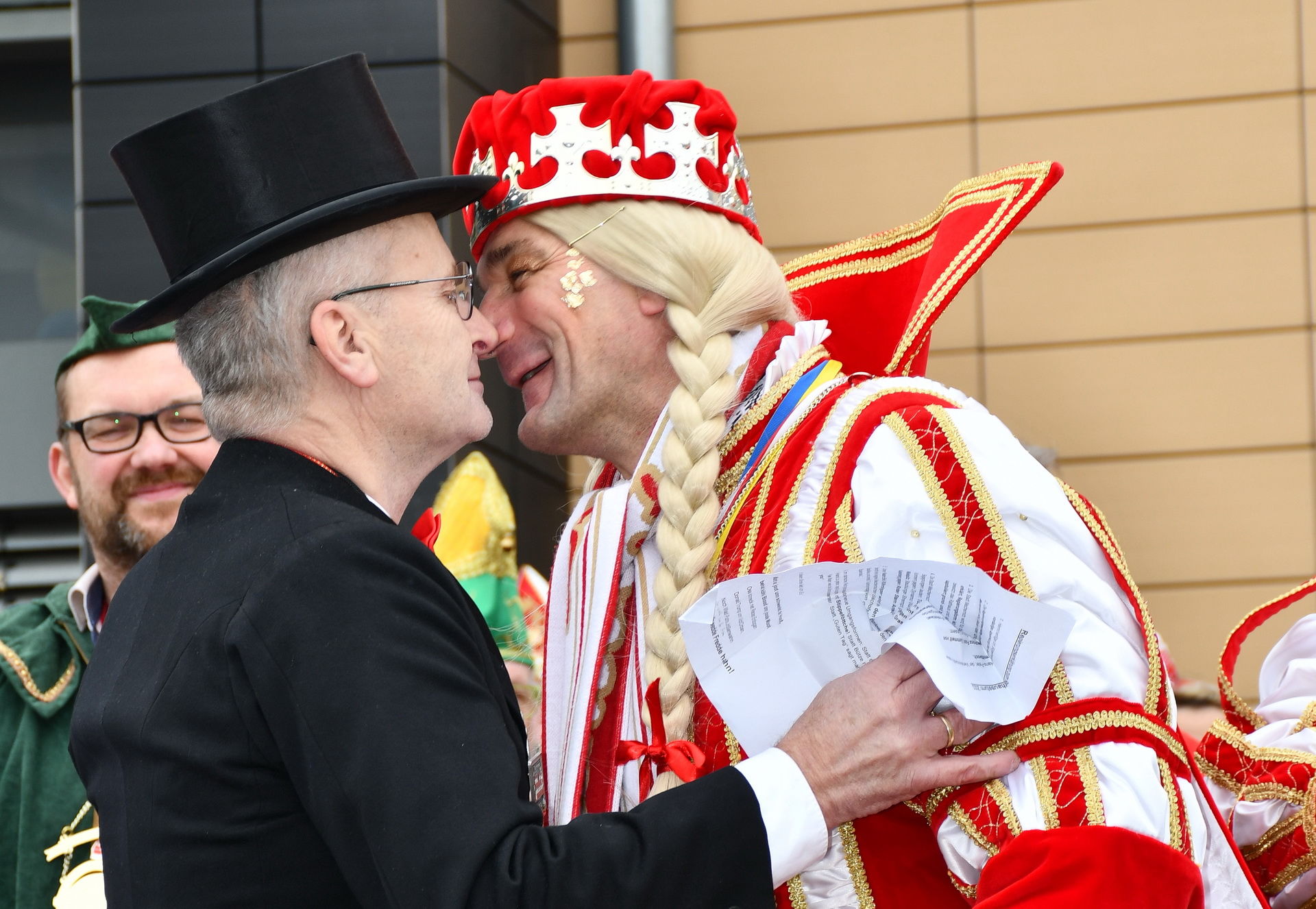 Erik Kardinal Pühringer, so der Bürgermeister, werde dieser Tage „de Ahl Kirch zur Basilika“ umwidmen und Tulpensonntag von der Rathaus-Loggia den Segen „Opi op Spandau“ erteilen. Der Menge rief der Verwaltungschef zu: „Alaaf you!“ Und unter Applaus: „In diesem Sinne lieb ich Euch: Maht et joot unn schwenkt dr Hoot/ behalt köhl Blood unn joode Moot/ Oss schreck net Recep Erdogan/ Donald Trump unn Vict/Orban/ Noch Wladi Putins Jrößenwahn/ Mir wolle endlich Fredde han…“