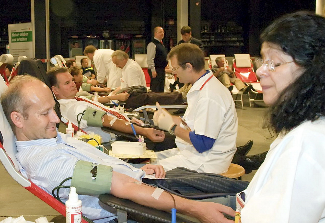 Bürgermeister Dr. Hans-Peter Schick unterstützt den Blutspendemarathon vom Start weg, ebenso wie Landrat Günter Rosenke und Johann Josef Wolf, der Begründer und Inhaber der Freizeit- und Kulturfabrik Zikkurat.