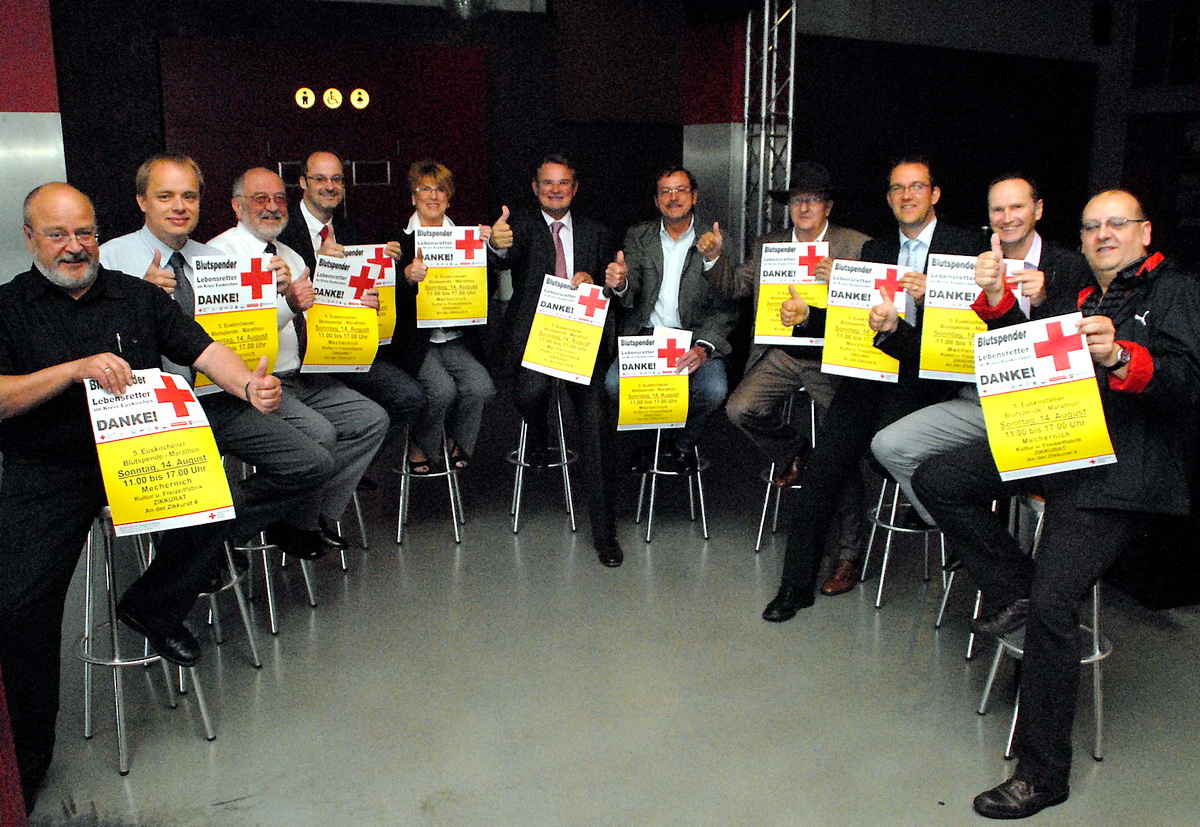 Mechernich-Firmenich – Zur gemeinsamen und gemeinnützigen Blutspende riefen Donnerstag bei einer Pressekonferenz in der Firmenicher Freizeit- und Kulturfabrik Zikkurat unter anderem Landrat Günter Rosenke, der Mechernicher Beigeordnete Thomas Hambach, Rotkreuz-Kreisvorsitzender Erwin Doppelfeld und Zikkurat-Begründer Johann Josef Wolf auf.