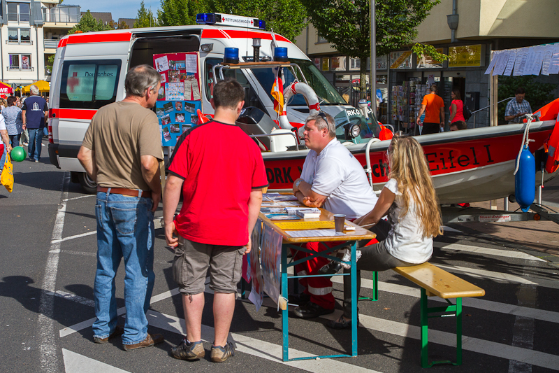 Bei tollstem Spätsommerwetter strömten die Besucher zum Mechernicher Brunnenfest. Quer durch das Zentrum schlängelten sich die Massen, immer unter den wachsamen Augen der Rotkreuzhelfer.