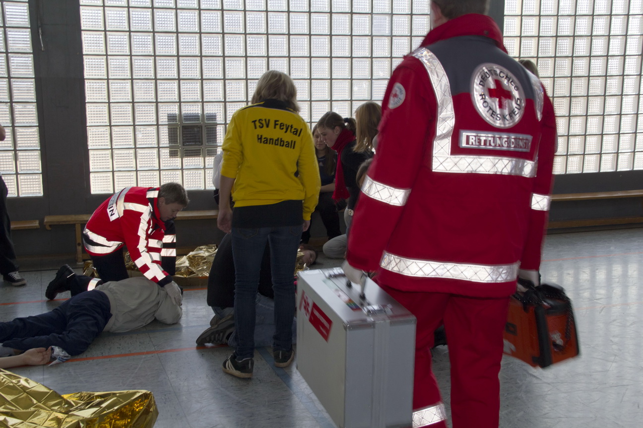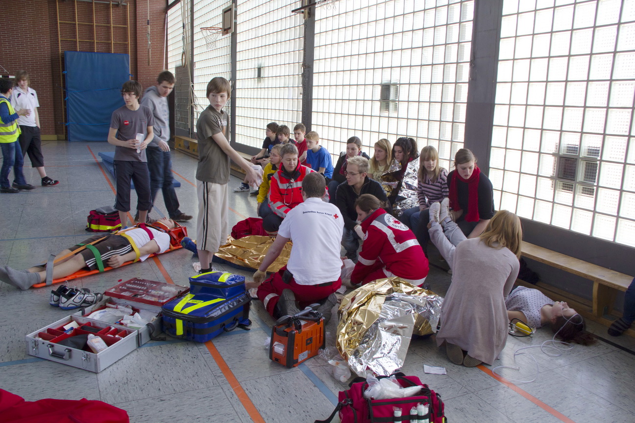 Rotes Kreuz im Kreis Euskirchen mobilisierte Schulsanitäter am Gymnasium am Turmhof für eine Überraschungsübung. Ein dickes Lob der Profis für die Nachwuchs-Sanis...