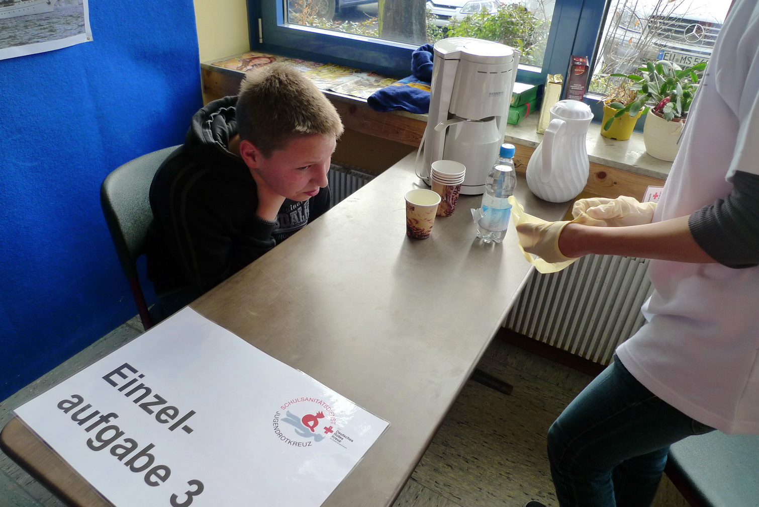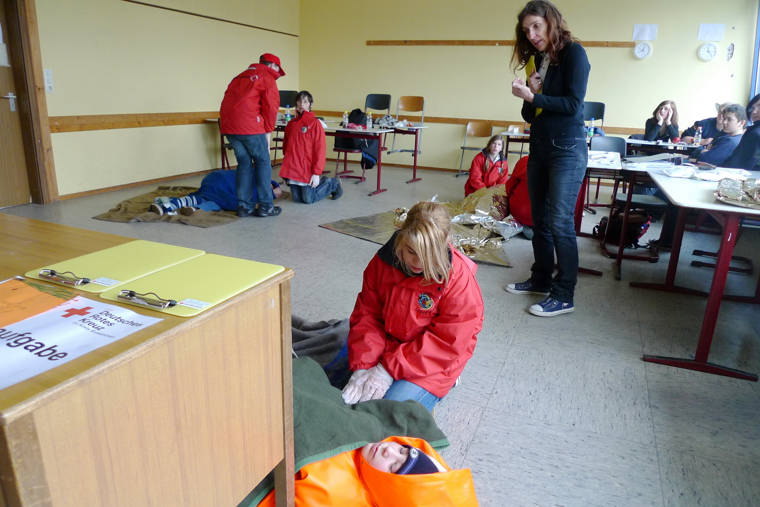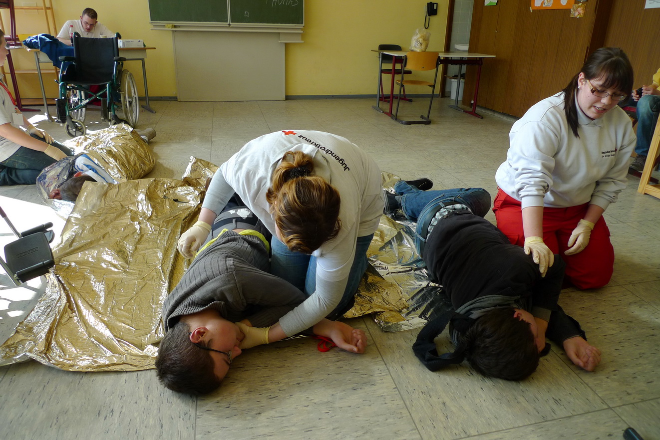 Vergangenes Wochenende fand im Gymnasium am Turmhof in Mechernich ein Wettbewerb der etwas anderen Art statt. Rund 120 Rotkreuzler, Jugendrotkreuzler und Schulsanitäter maßen in 19 Kleingruppen ihr Können in Erster Hilfe miteinander.