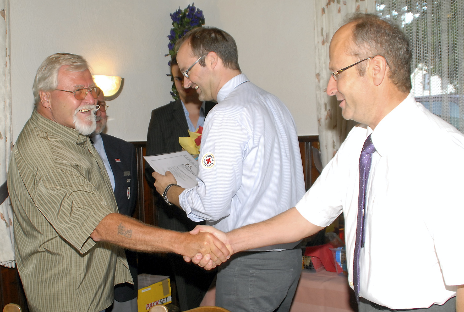 Diese Hilfe der Stadt sei umso wichtiger, so Erwin Doppelfeld, der Kreisvorsitzende des Roten Kreuzes, da mit den bundesweit vier Millionen benötigten Blutspenden Tag für Tag viele Menschenleben gerettet werden. Doppelfeld: „Wissen Sie, warum ich so gerne zu Blutspenderehrungen gehe? Weil ich da mit Menschen am Tisch sitze, die mit Sicherheit schon anderen Menschen zu einem zweiten Leben verholfen haben und die damit bewiesen haben, dass Nächstenliebe in ihrem Leben eine Priorität besitzt.“