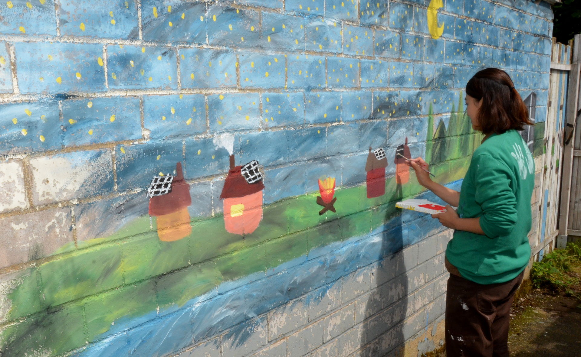 Rotkreuz-Urgestein Rolf Zimmermann beschreibt die 14 Tage als „das bisher größte Peace-Camp“. Jeder der Teilnehmenden trug seinen Teil dazu bei und half so, drei weitere zu den bis dato zehn Projekten auf dem weitläufigen Gelände zu verwirklichen.