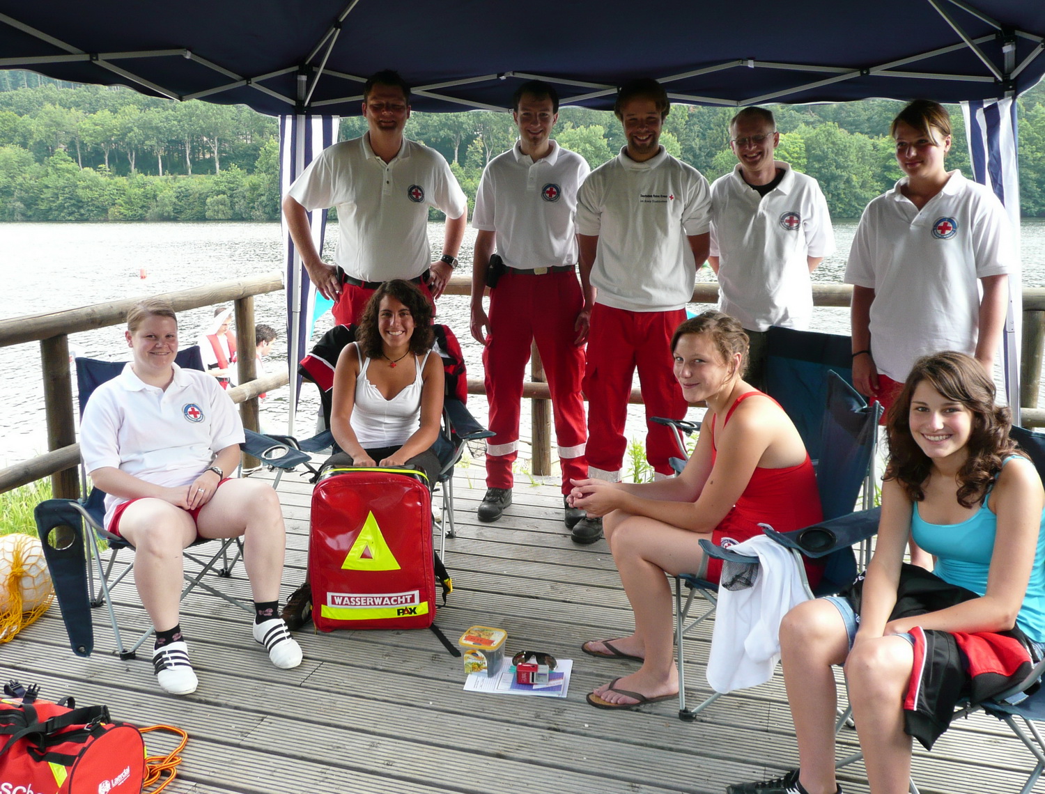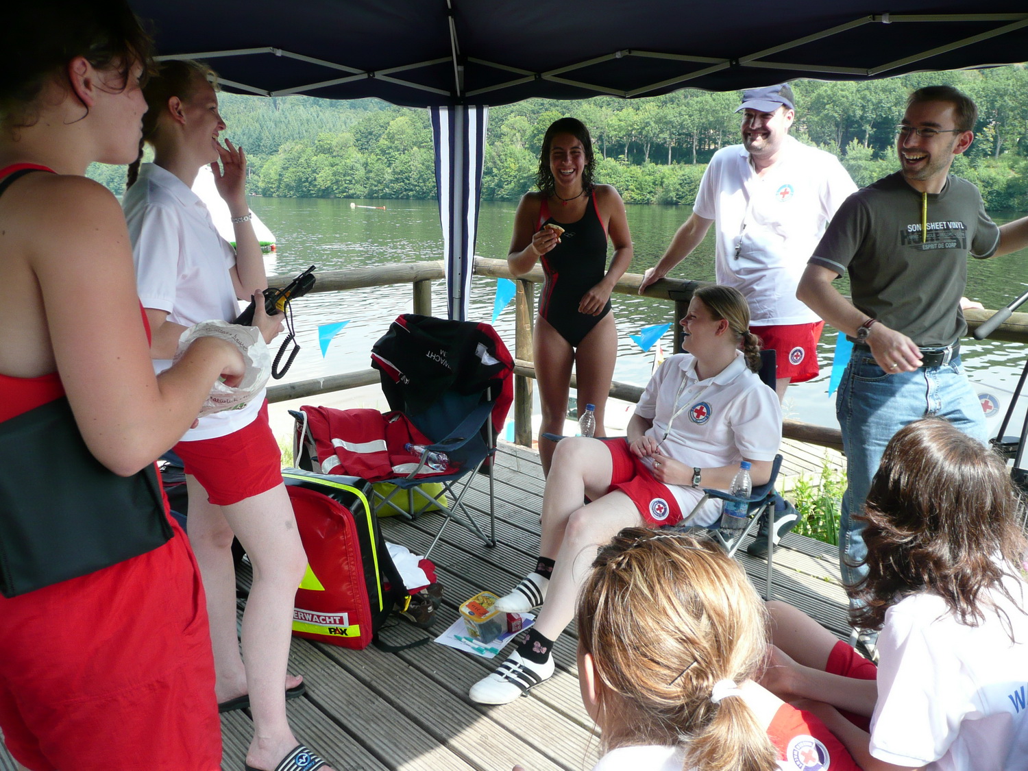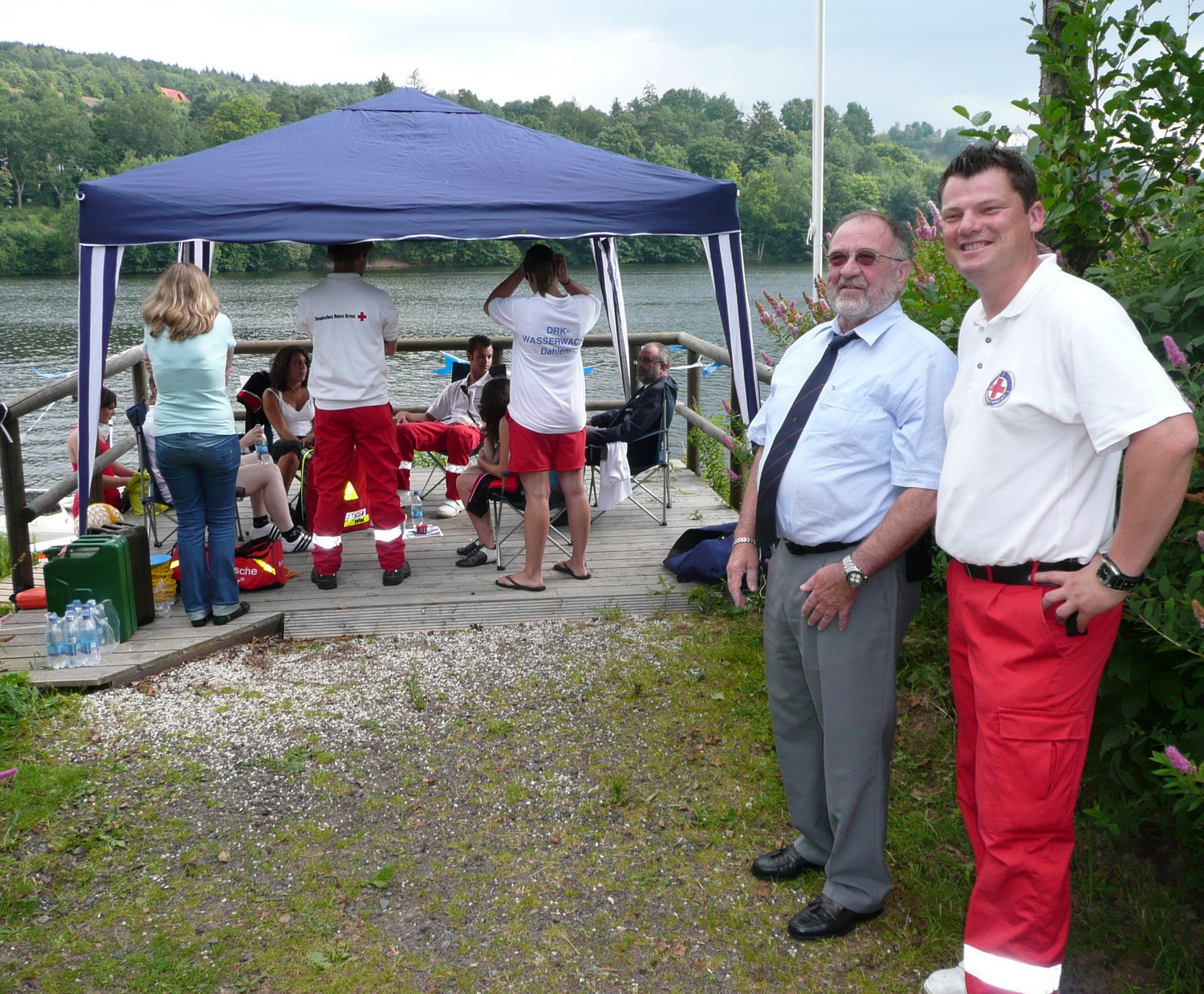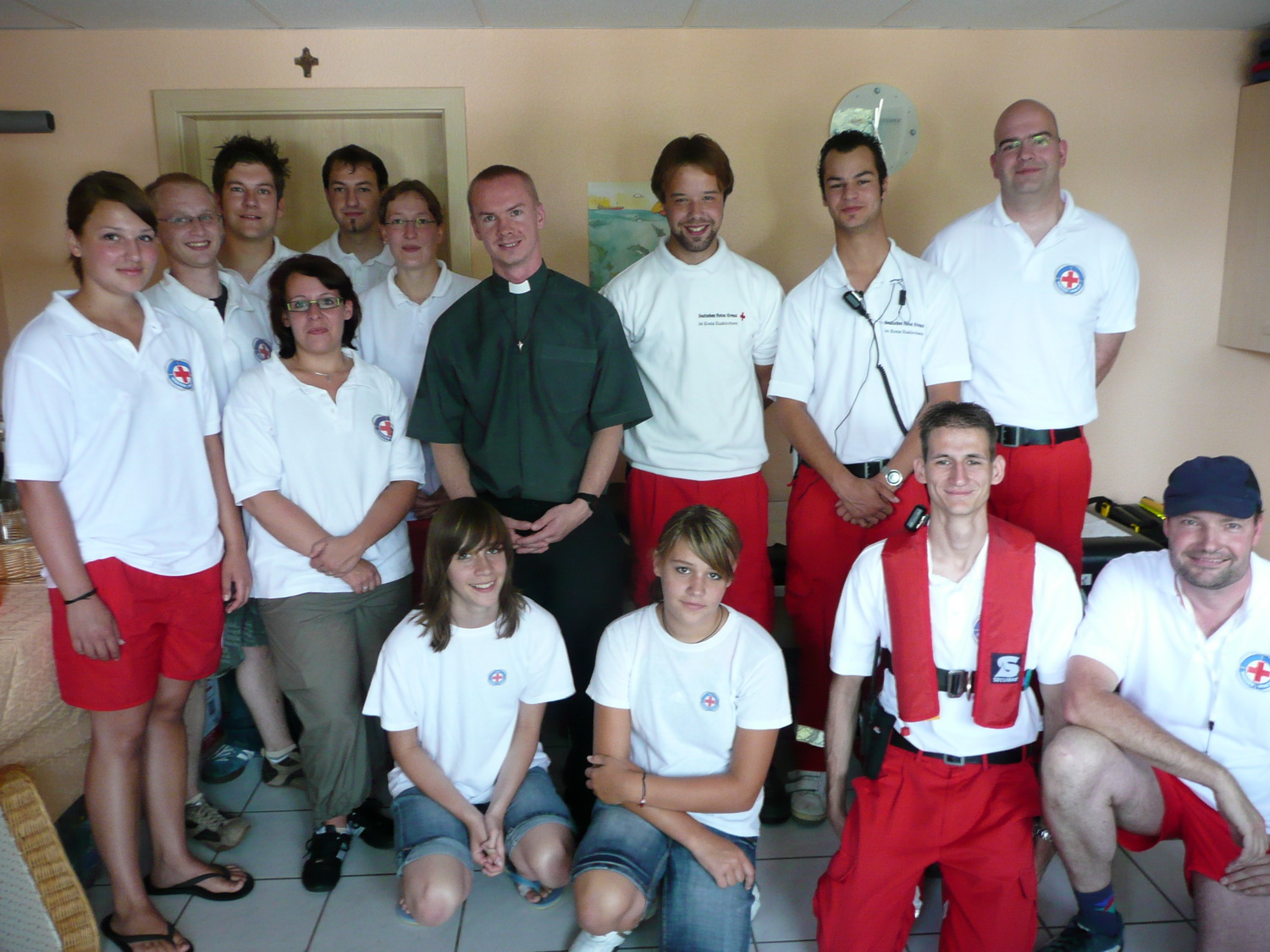 Zimmermann: „Gäste, befreundete Wasserwachtler, die Vertreter der Lokalpresse und der WDR Lokalzeit Aachen erlebten die tolle Dahlemer Wasserwachttruppe in bester Stimmung, und Pater Vladimir aus Dahlem segnete die neue Heimat der Rotkreuzler und hatte auch gleich gutes Wetter bestellt!“