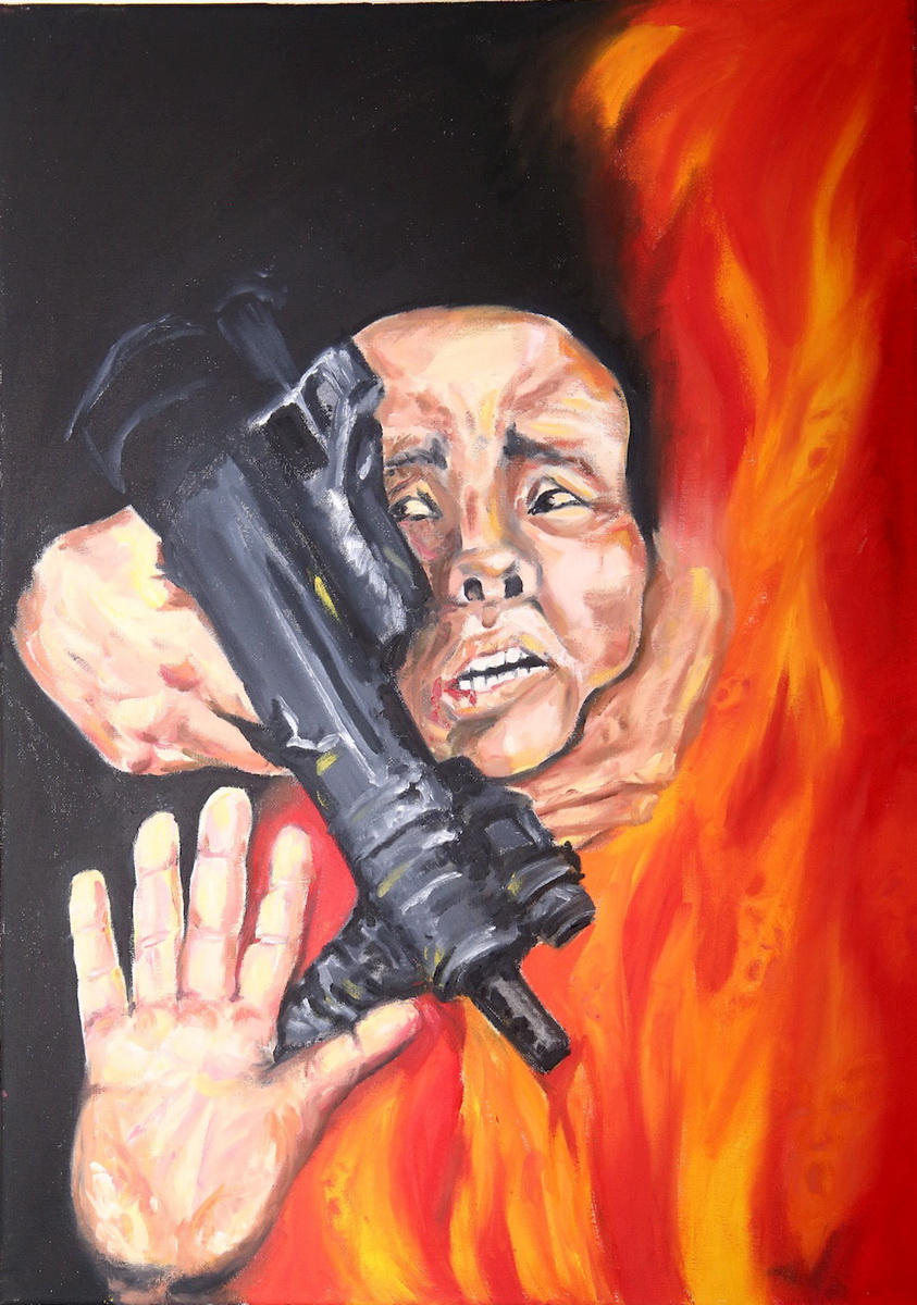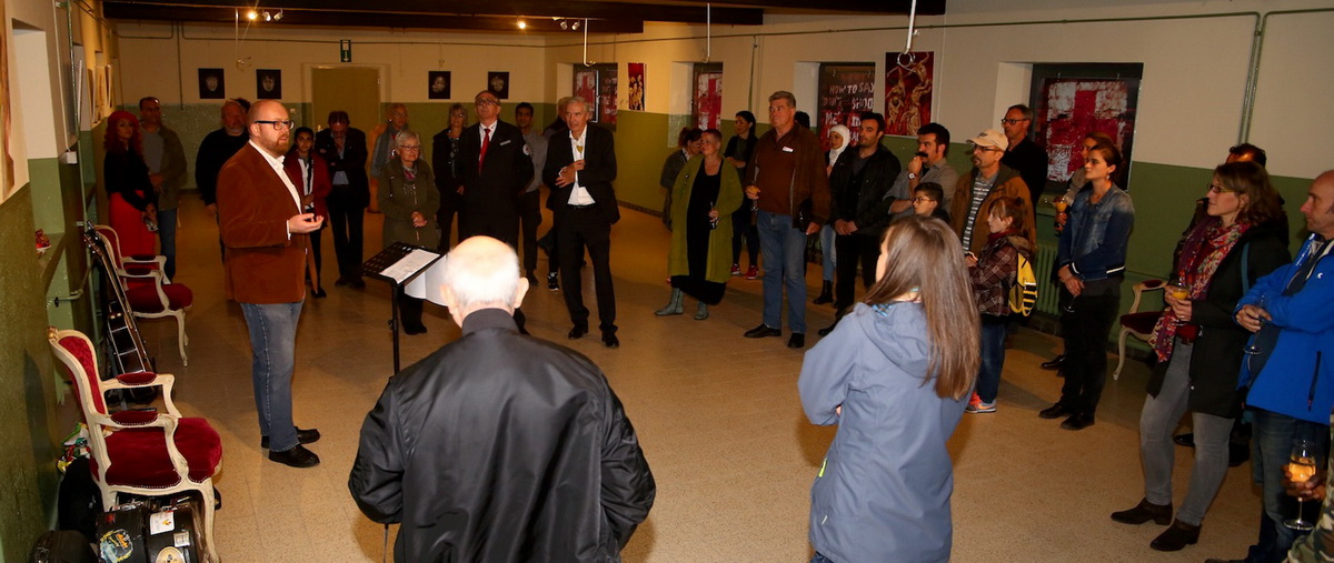In einer Ausstellung im Rotkreuzmuseum zeigen Flüchtlinge in Gemälden und Skulpturen ihre Sicht auf Flucht und Ausgrenzung – Ausstellung kann noch bis zum 4. November besichtigt werden – Eröffnung mit rund 50 Gästen