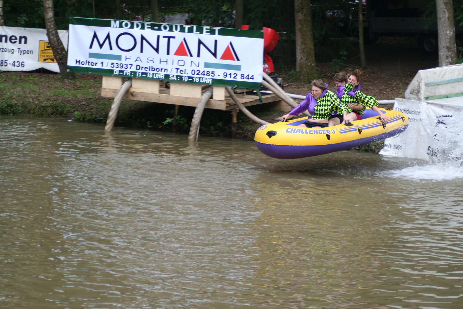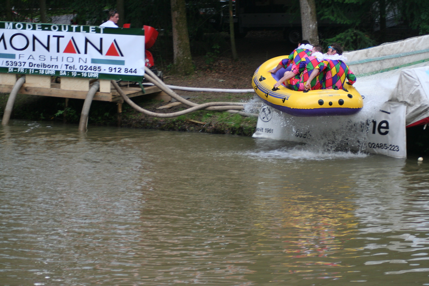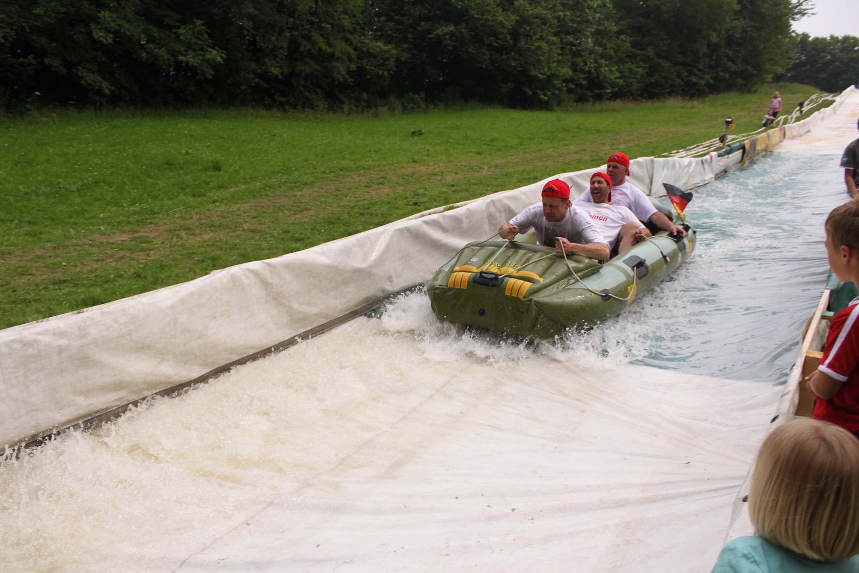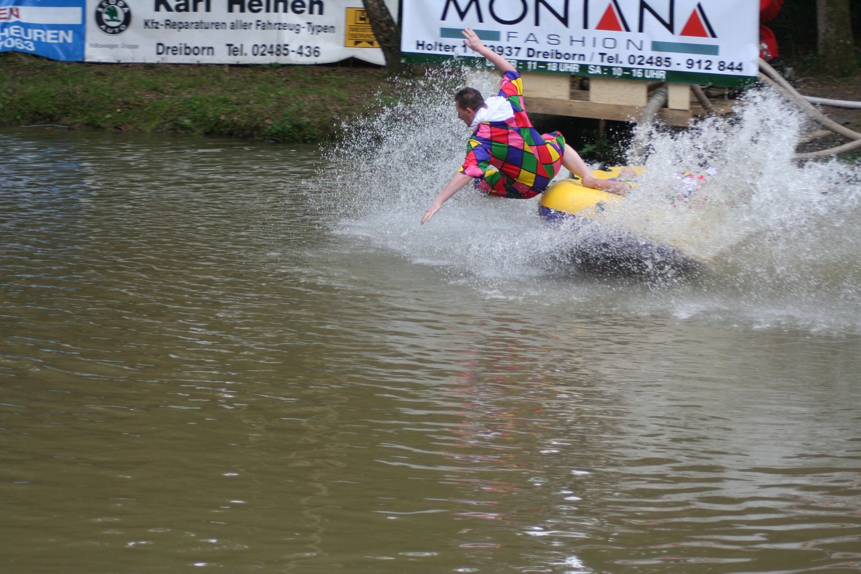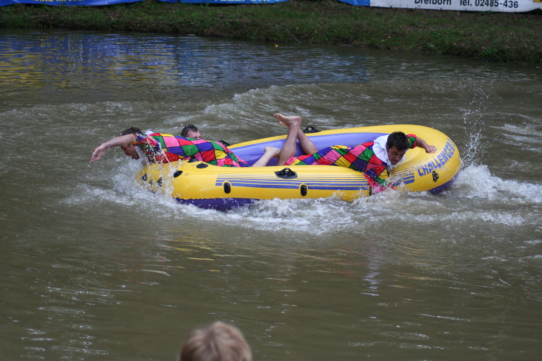 Heute wurde es nass im kleinen Eifeldorf Dreiborn. Eine 100 Meter lange Planenbahn, viele Schlauchboote und mehrere Tausend Zuschauer - das war am Samstag, 27. Juni, in Dreiborn zu sehen. Wie in jedem Jahr veranstaltete auch in diesem Jahr der Junggesellenverein Dreiborn den kühnen Wasserspaß.