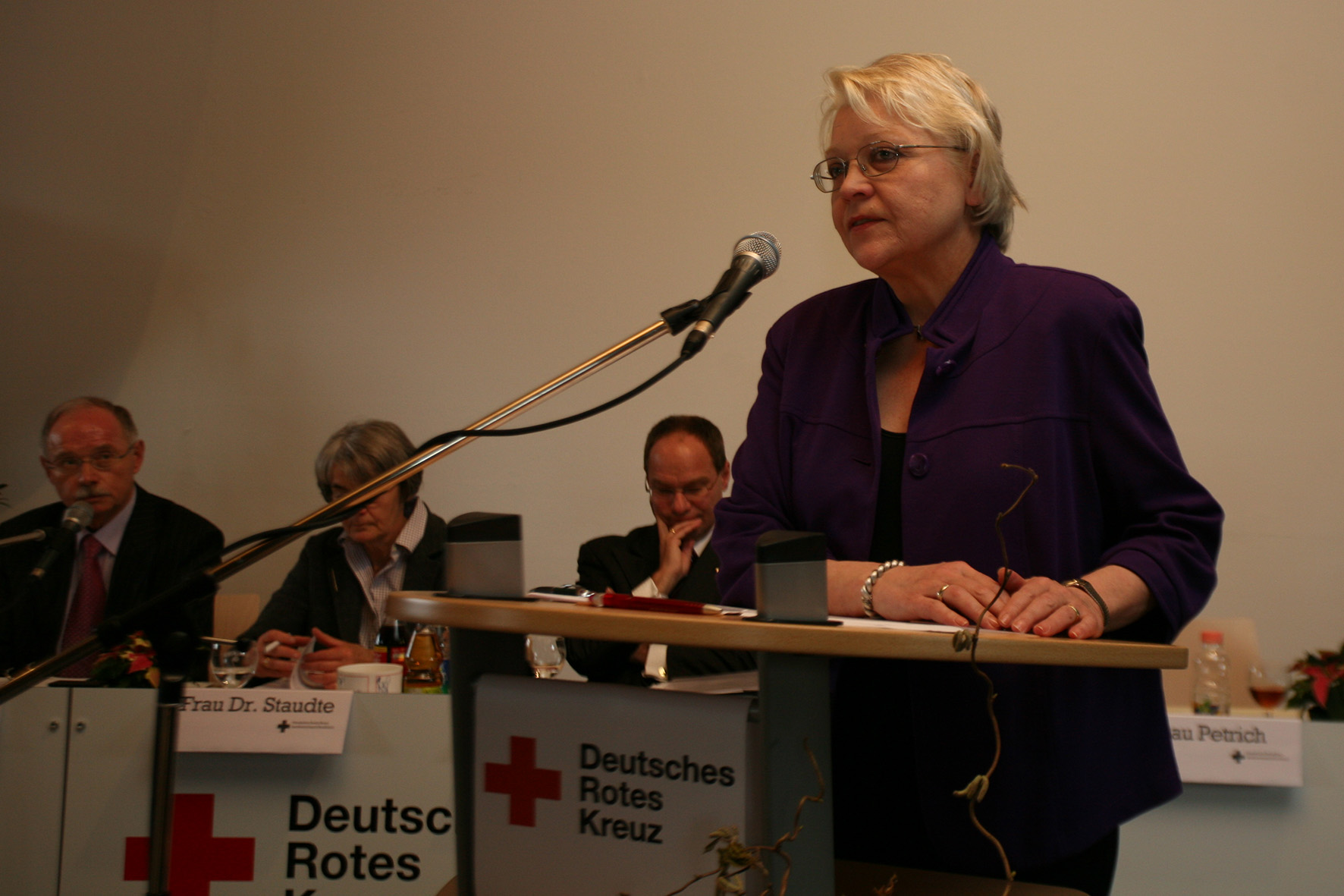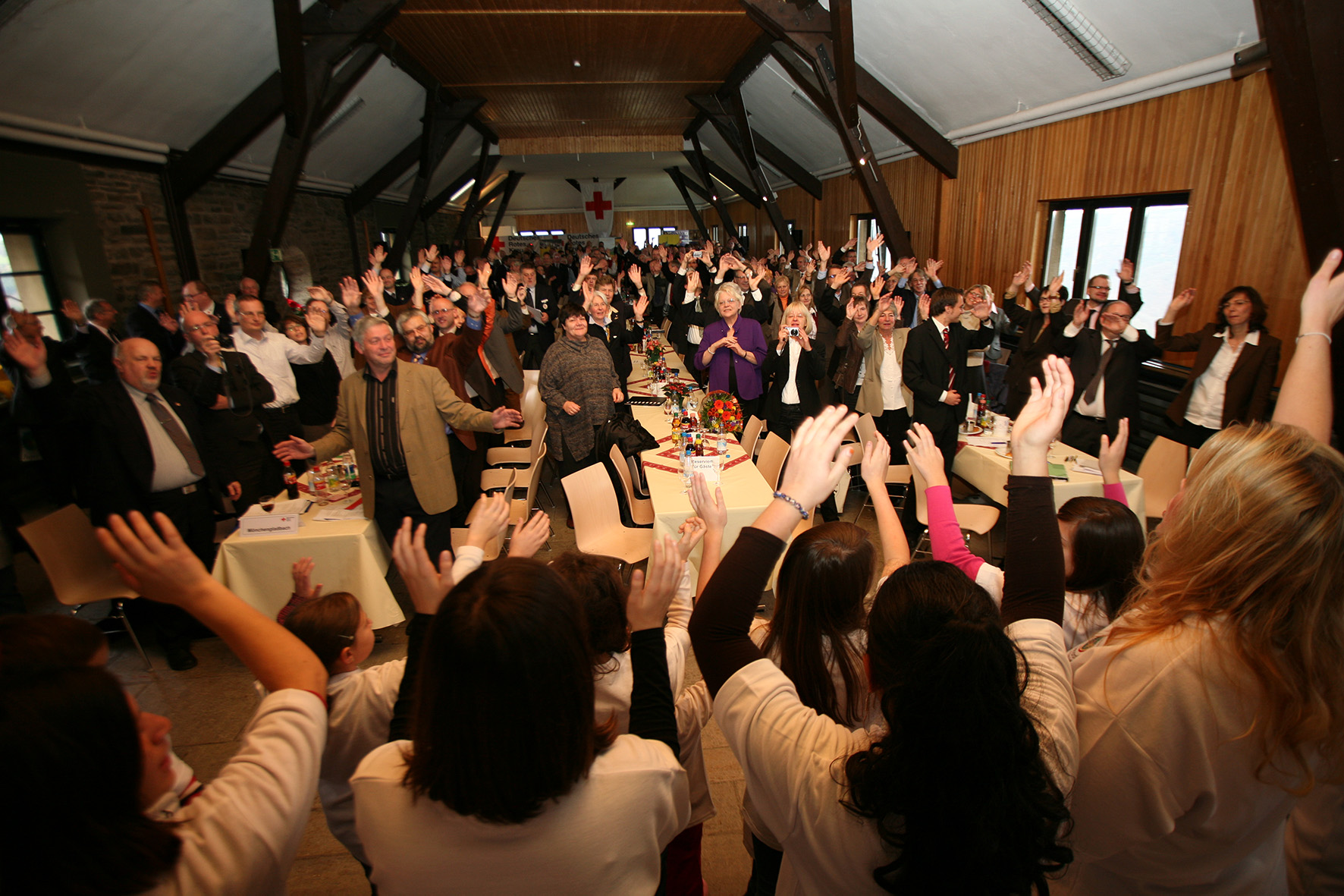 Delegierte des DRK-Landesverbandes Nordrhein trafen sich auf Burg Vogelsang. Dr. Birgitt Morgenbrod stellte dort eine Studie vor, die sich mit der Bedeutung des DRK während der Nazi-Diktatur beschäftigt hat