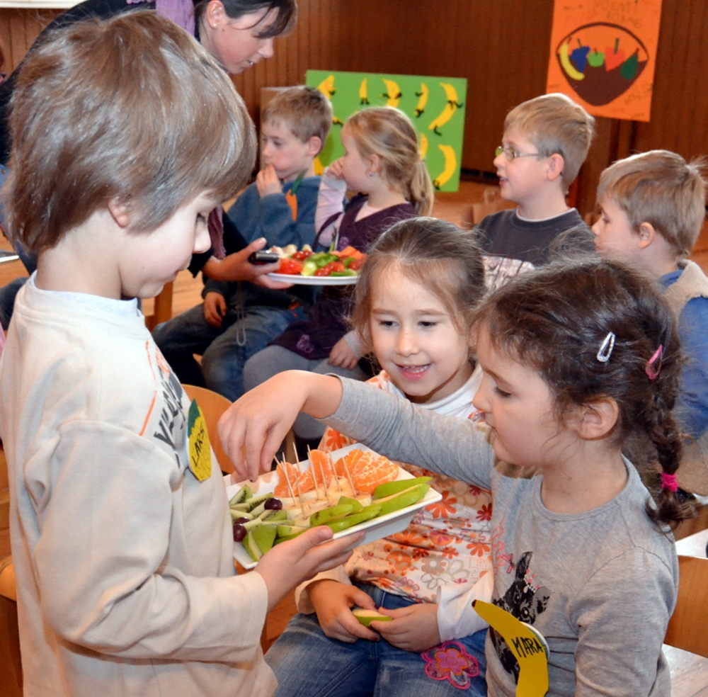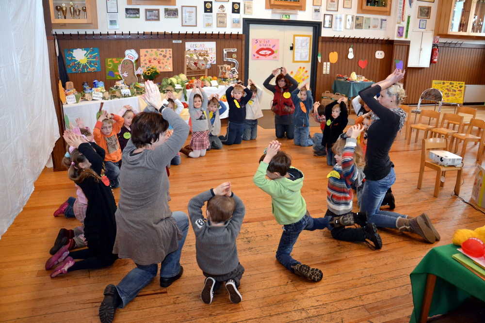 „Das tut Dir gut und hält Dich fit, 5 am Tag – macht alle mit!“ Im Oberhausener „Kindertraumland“ wurde äußerst wirkungsvoll eine Lanze für mehr Obst und Gemüse gebrochen. Am Frühförderworkshop „Gesunde Ernährung, neu aufgetischt mit Neuen Medien“ nahmen insgesamt 19 Vorschulkinder aus den Kindertagesstätten Oberhausen, Herhahn und Gemünd 1 teil – und nach dem einprägsamen Abschlussliedchen hatten alle ein Versprechen parat, nämlich künftig fünf Mal am Tag auf die „guten Vitamine“ zu achten.