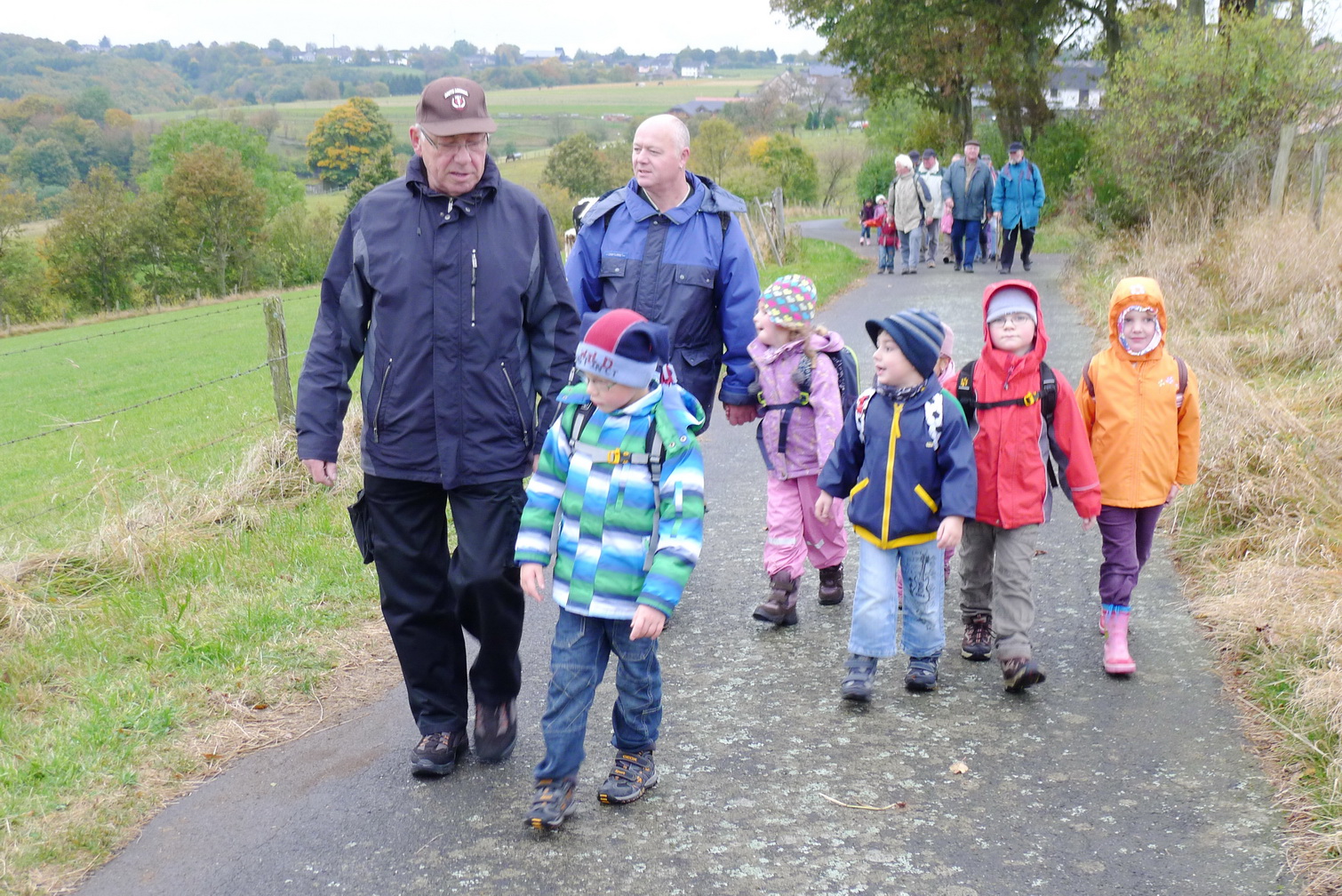 Eine Wanderung nach Vogelsang stand jetzt auf dem Programm der Kinder in der Rotkreuz-Kindertagesstätte in Herhahn. Aber es war ein ganz besonderer Tag denn heute waren die Großväter mit dabei.