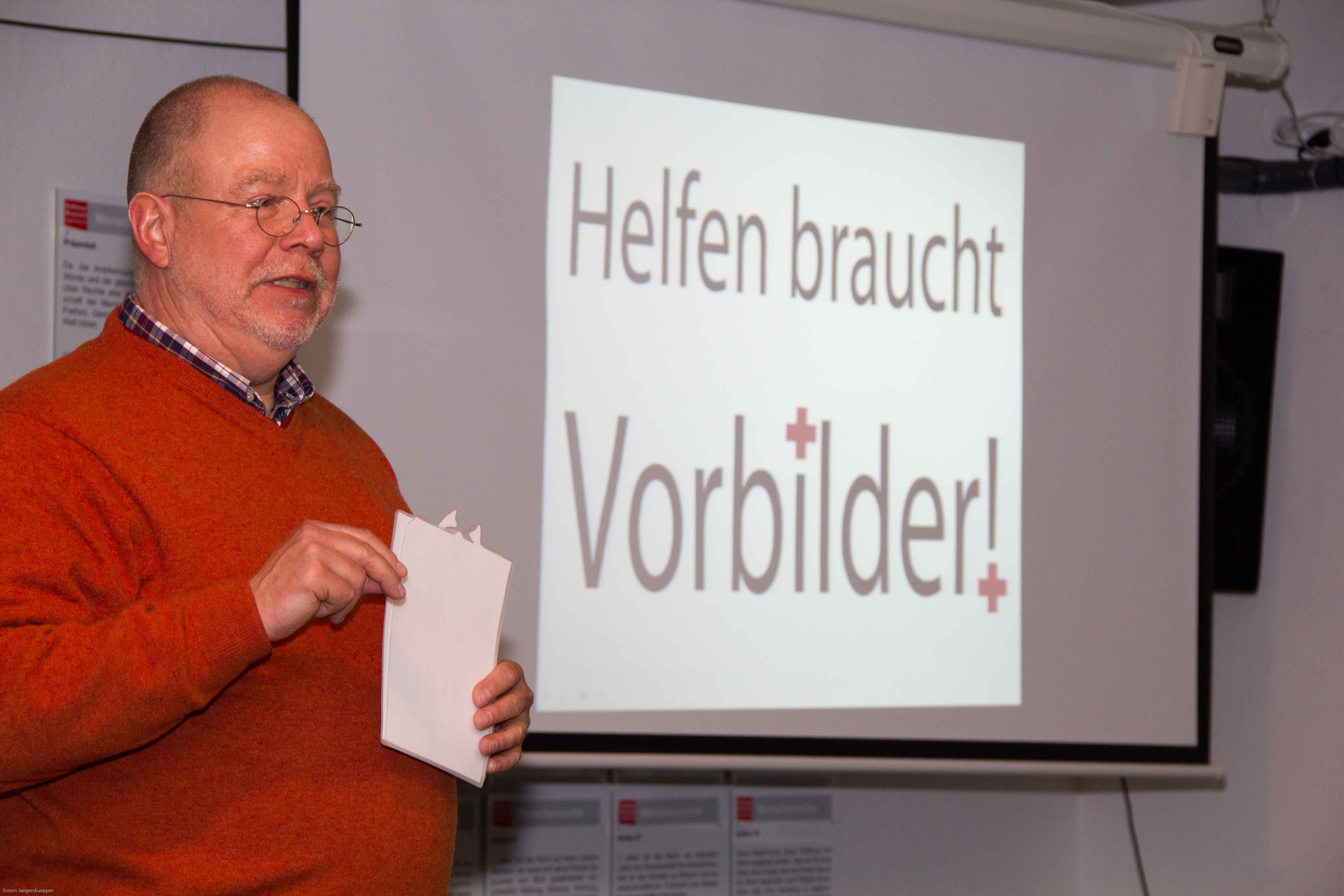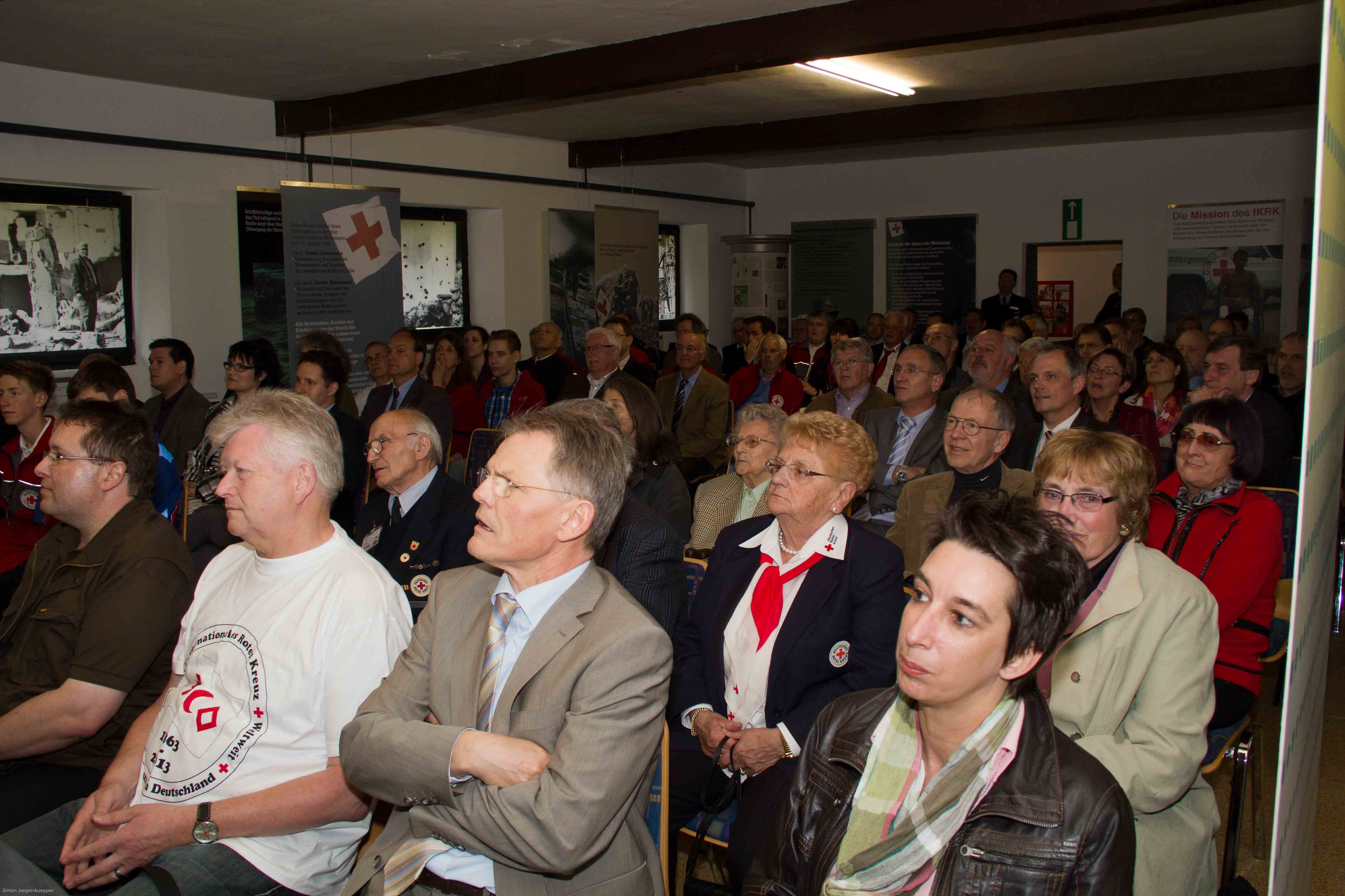 Schön sagte: „Es gibt verschiedene Rotkreuzmuseen, alle sind wichtig und reizvoll, aber dieses eine hier und noch dazu am geschichtsträchtigen Ort, hat das humanitäre Völker- und Menschenrecht zum Thema, das ist ein Alleinstellungsmerkmal.“ Außer ihm und Rolf Zimmermann äußerten sich am Eröffnungsabend altgediente wie ganz junge Rotkreuzler zum Tagesthema „Helfen braucht Vorbilder“.