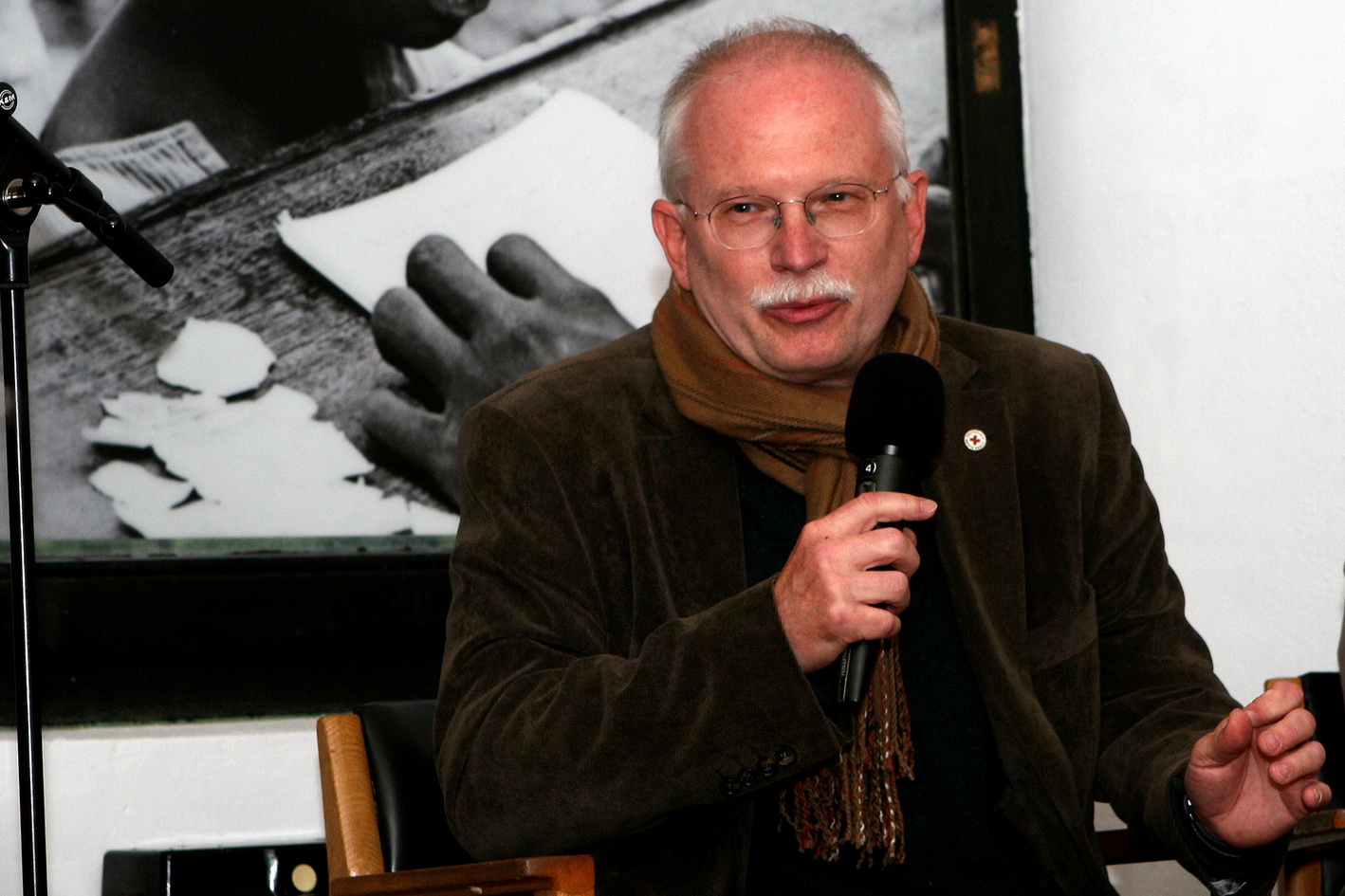 Rolf Zimmermann, der geistige Vater und unermüdliche Motor des neuen Rotkreuzmuseums, eröffnete die zweite Saison mit Werkstattcharakter mit einer freundlichen Begrüßung der zahlreichen und zum Teil auch prominenten Gäste. Der bekannteste war Dr. Volkmar Schön, einer der engsten Vertrauten in der Hamburger Landesregierung von Ole von Beust, Staatsrat in der Senatskanzlei, und jetzt Vize-Präsident des Deutschen Roten Kreuzes.