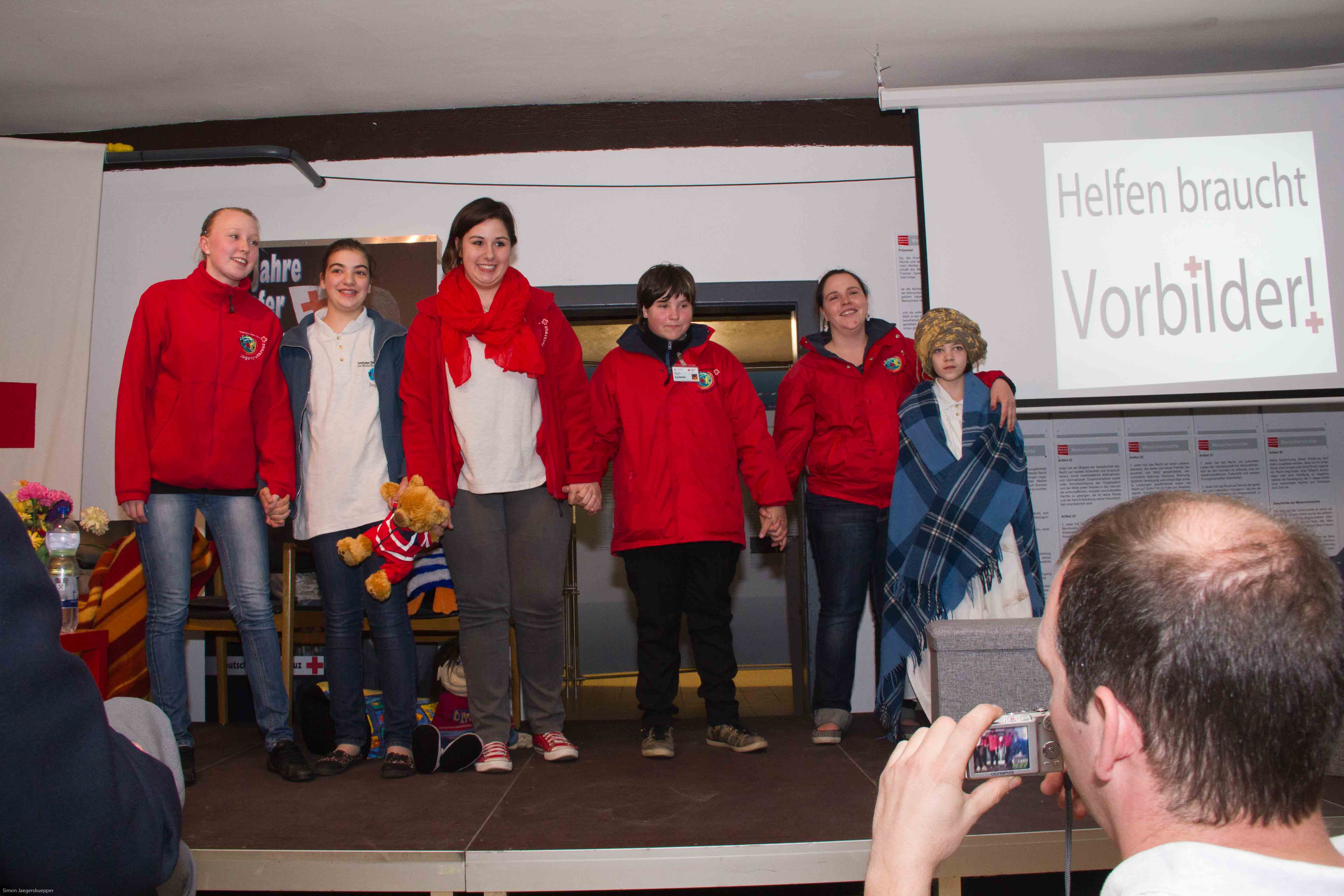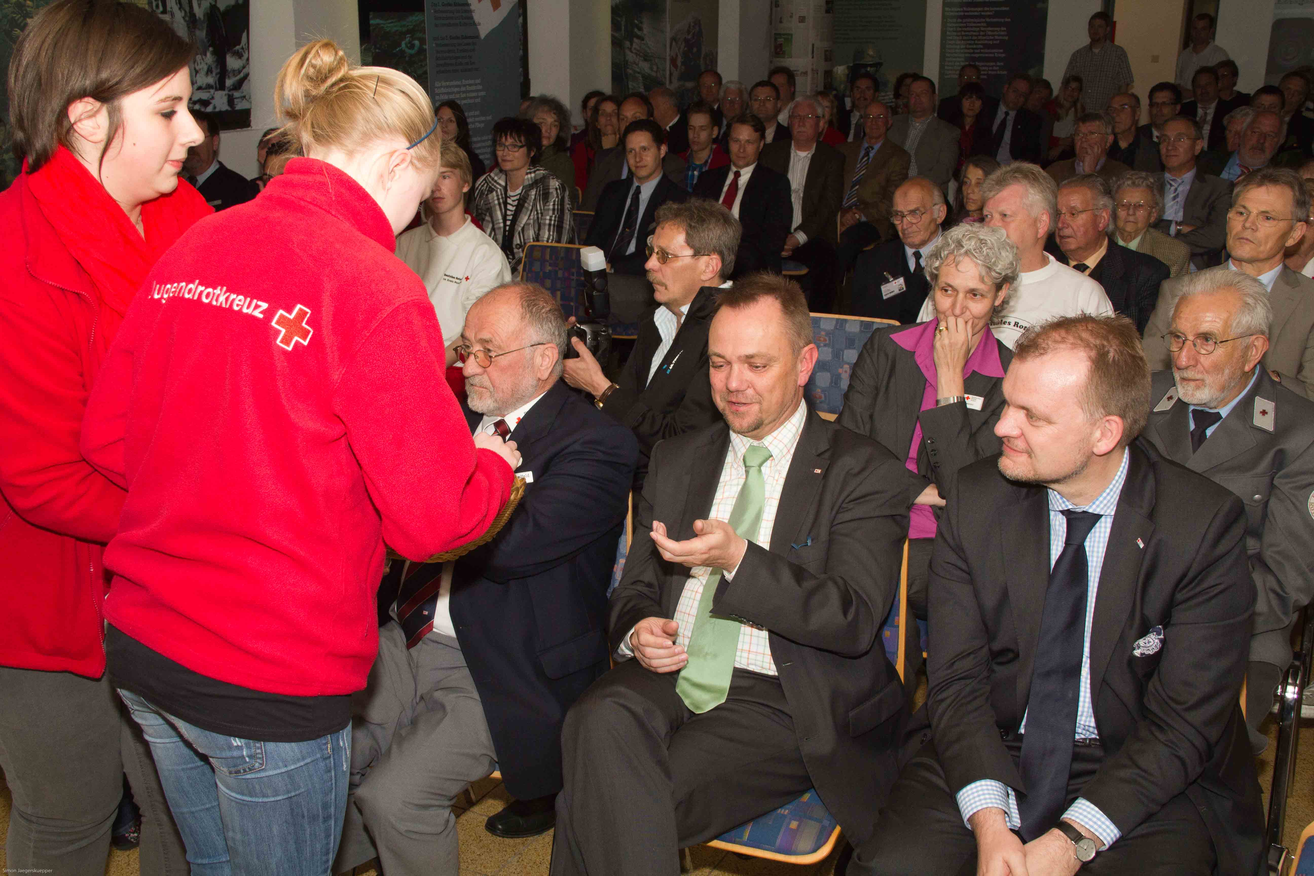 Mit Inga Jansen (15), die bereits seit neun Jahren im Jugendrotkreuz Weilerswist ist, der Ehrenamtsbeauftragten Linn Richter und Pauline Löffler (18), die vom Schulsanitätsdienst ins Rote Kreuz wechselte, bezogen engagierte junge Jugendrotkreuzleute Stellung. Und sie legten ebenso überzeugend ihr Credo für die weltweite Rotkreuzbewegung ab wie die „alten Hasen“.