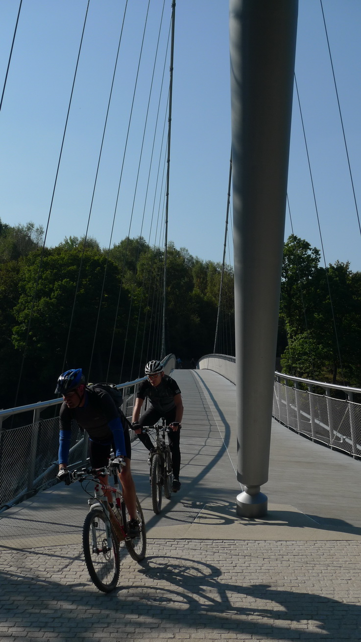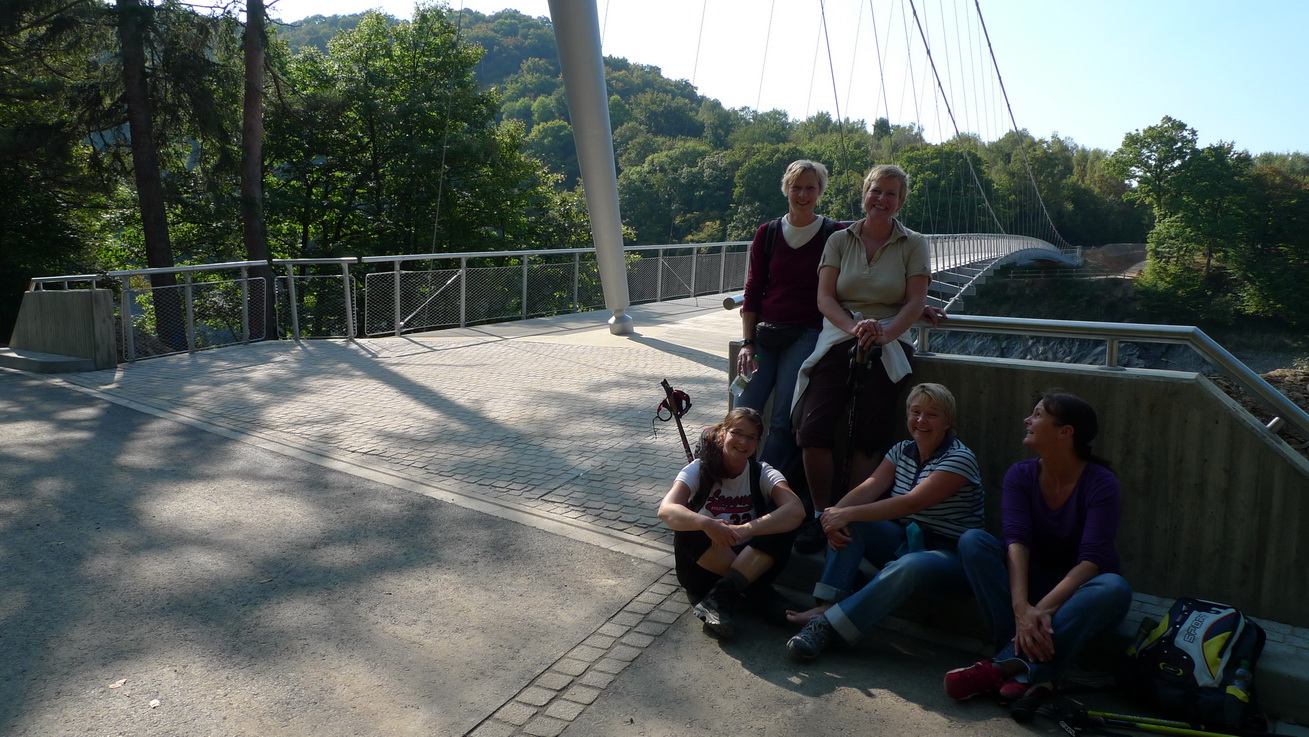 Wanderer und Radfahrer nutzen eifrig die Möglichkeit der neuen Urftüberquerung, denn jetzt werden auch neue Rundwege möglich: