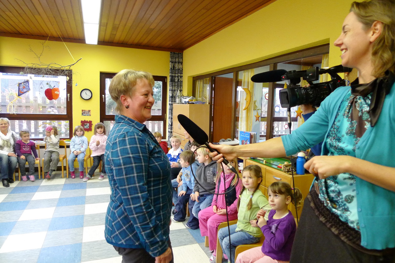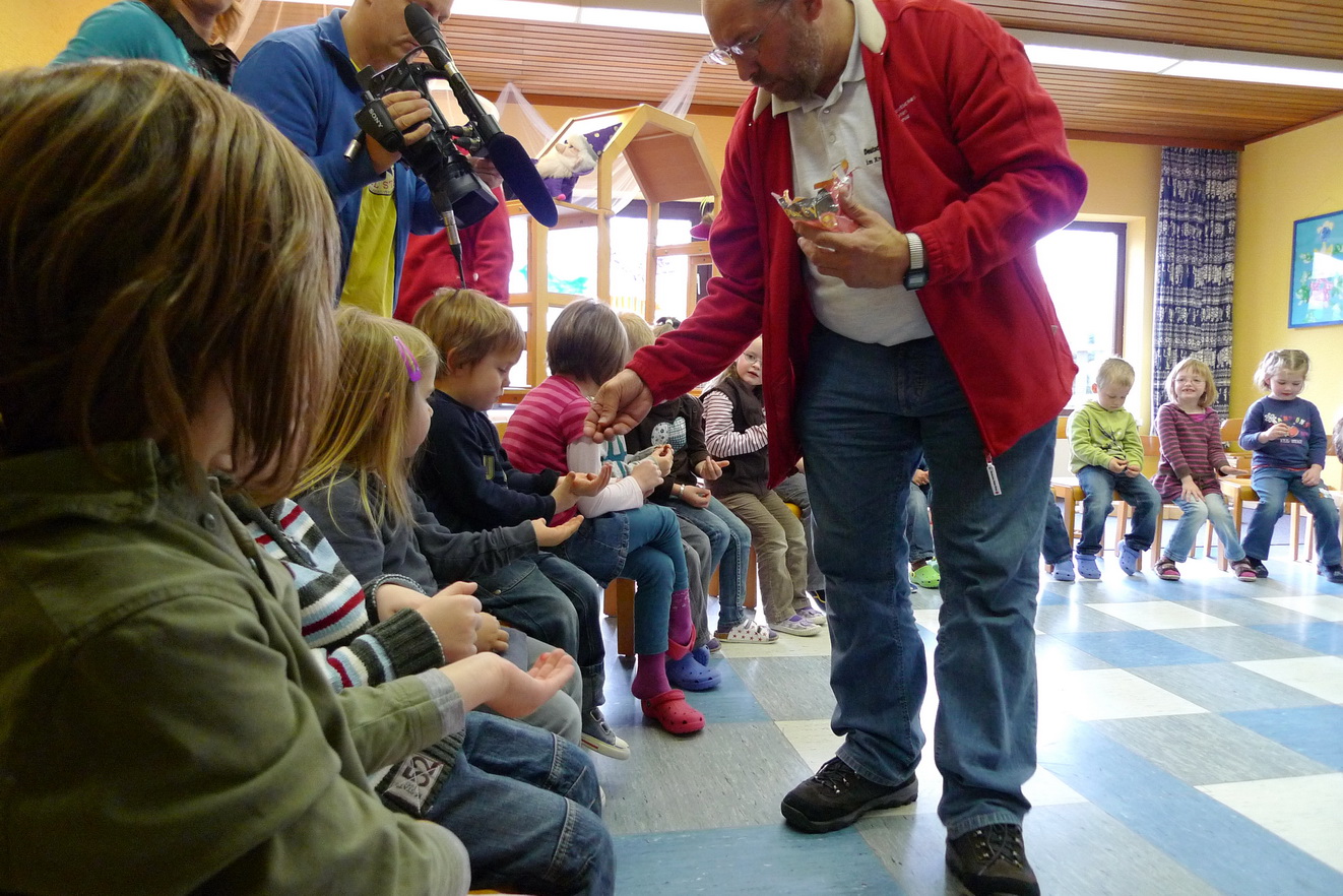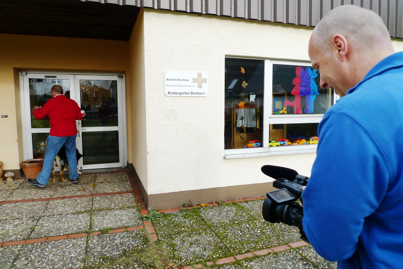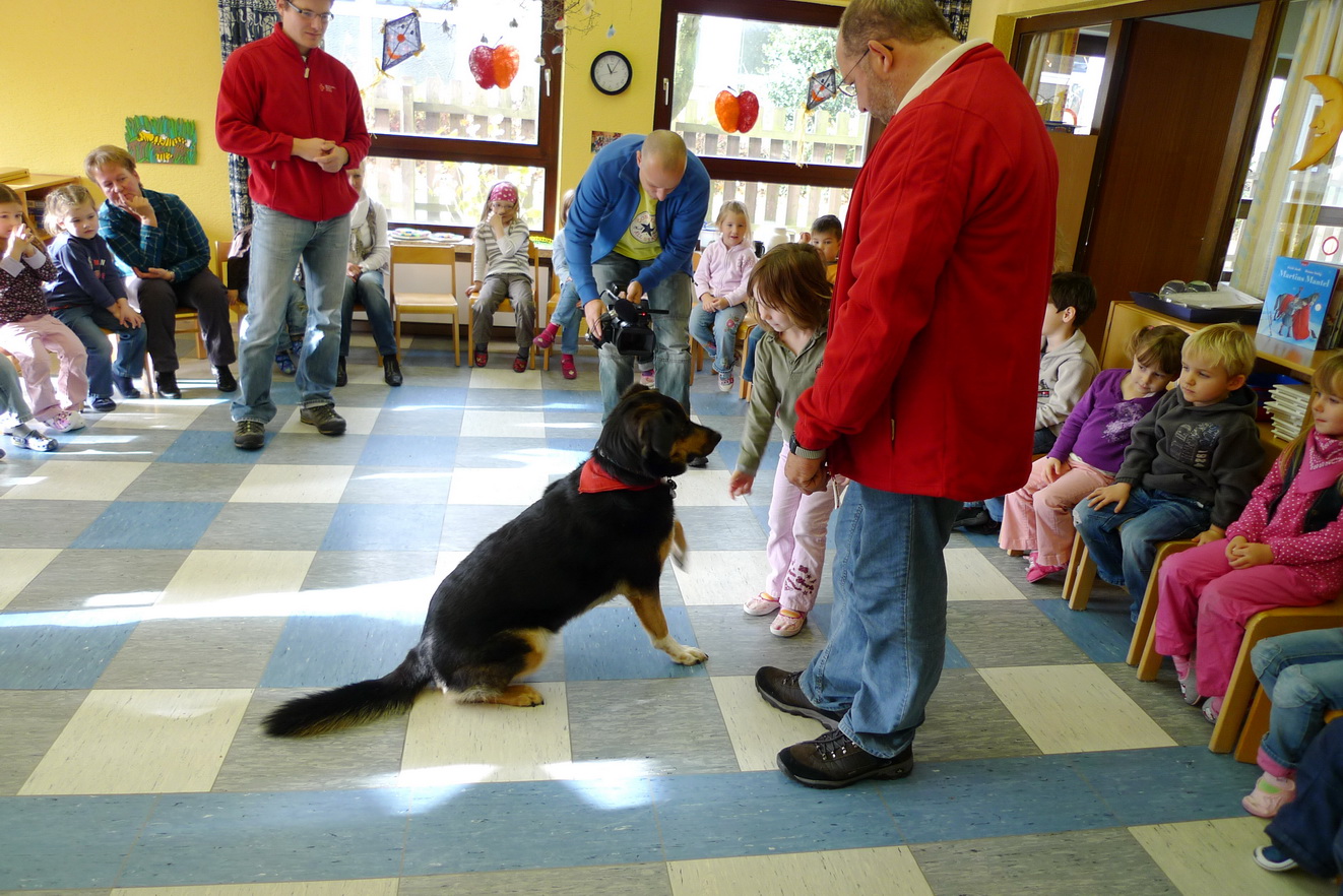 Der "Besuchshundedienst" ist ein neues Projekt der Rotkreuz-Rettungshundesaffel aus Kall. Unterstützt von der "Aktion Mensch" stellt Franz Küpper, Leiter der Rettungshundestaffel, ein Team von Freiwilligen zusammen, die ehrenamtlich mit ihren braven Vierbeinern Menschen in Alten- oder Pflegeheimen besuchen. Oder wie hier in der Kindertagesstätte Dreiborn...