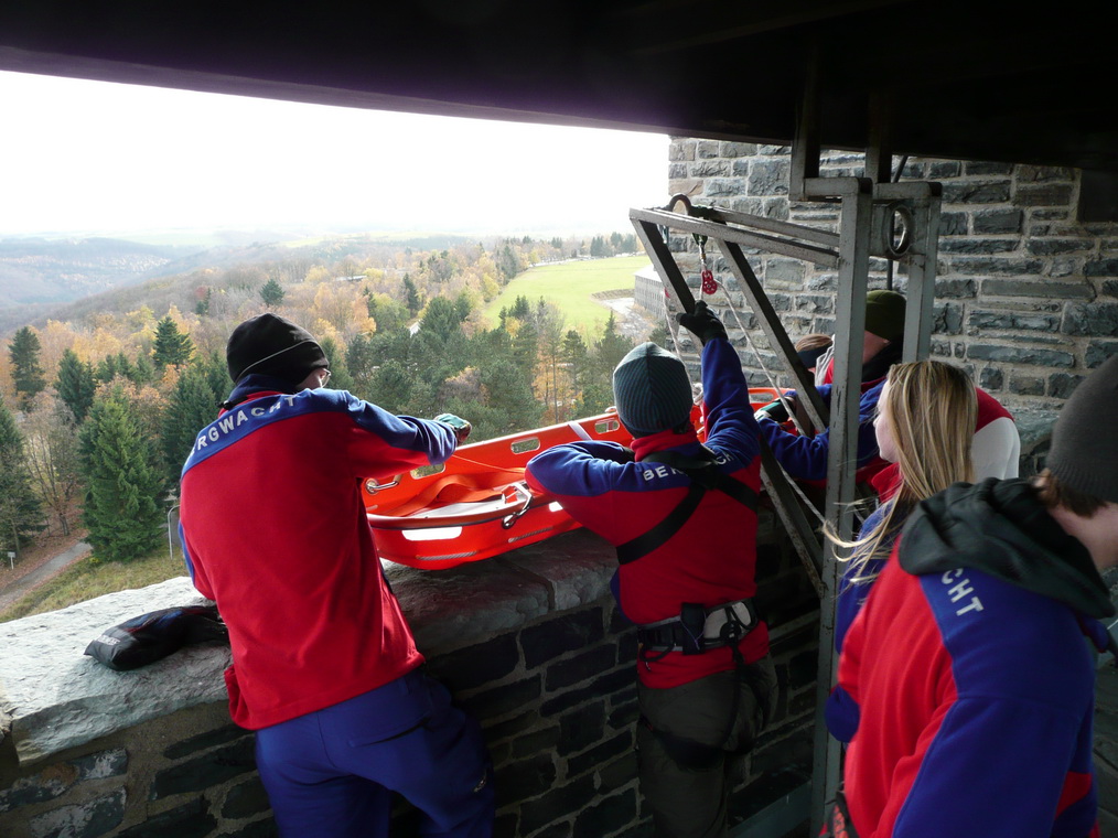 Schleiden - Rotkreuz Bergwacht übt die Rettung vom Turm in Vogelsang