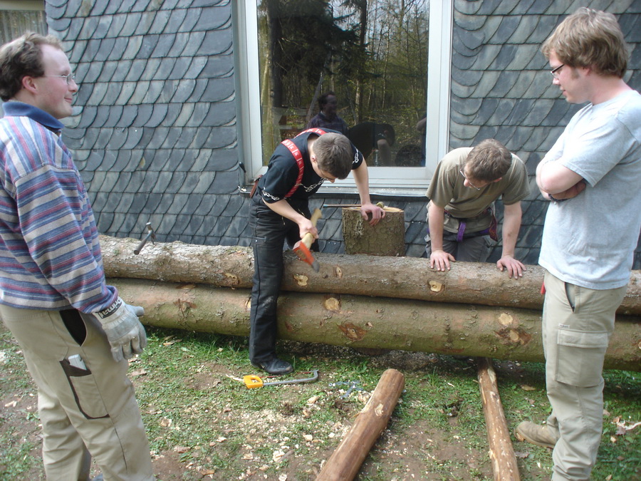 Am vergangenen Wochenende wurde dann das zweite Großprojekt begonnen. Rund um das Haus des Jugendrotkreuzes entsteht ein Abenteuerpfad mit erlebnispädagogischen Team-Elementen.