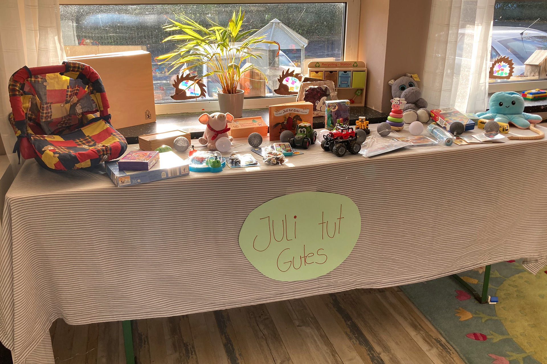 Herhahn / Mechernich | Kinder der DRK-Kita Herhahn nahmen sich das Bilderbuch „Juli tut Gutes“ zu Herzen und gaben ein Spielzeug her für den guten Zweck – Der Mechernicher Hilfsgruppen-Chef Willi Greuel freute sich über eine Spende in Höhe von 300 Euro
