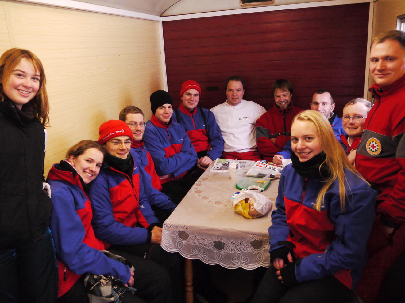 Der frühe Wintereinbruch in der Eifel hätte die ehrenamtlichen Einsatzkräfte des Roten Kreuzes fast überrascht. Aber dann wurden sie doch rechtzeitig fertig mit der Einrichtung ihrer Wachstation in Udenbreth. Jetzt ist die Station wieder an Wochenenden besetzt und die Rotkreuzler stehen für die Sicherheit der Wintersportler bereit.