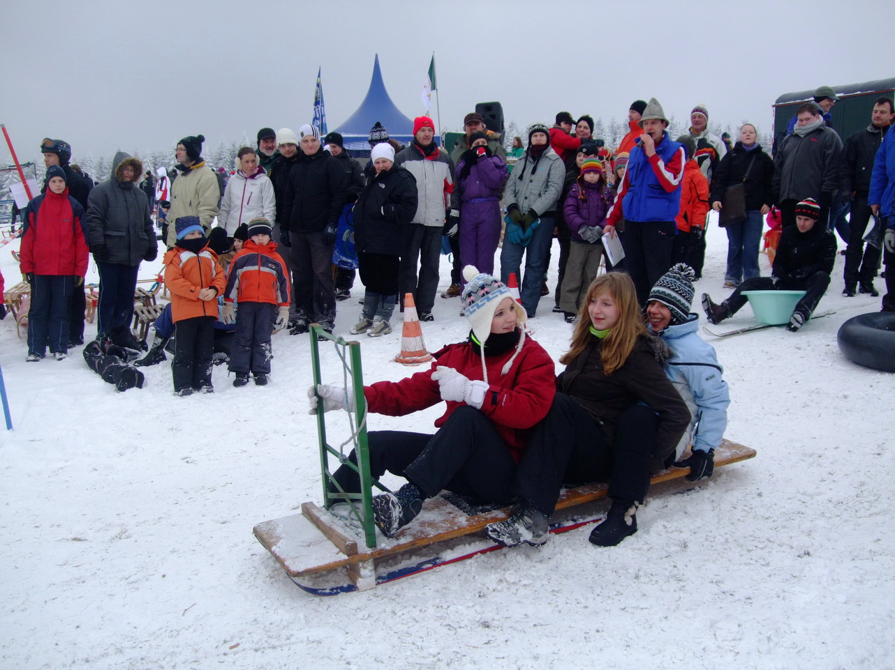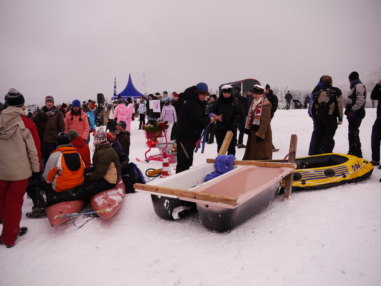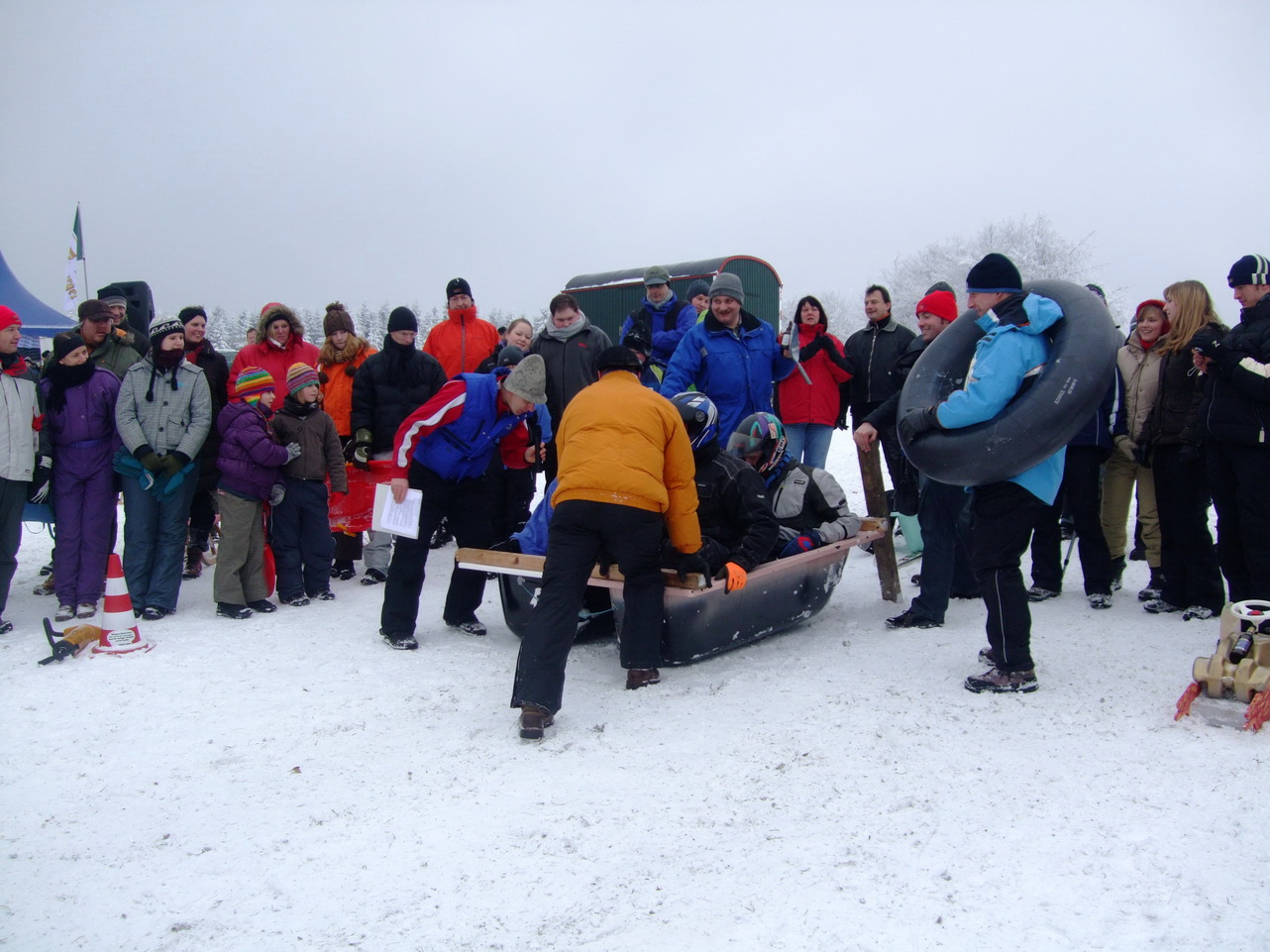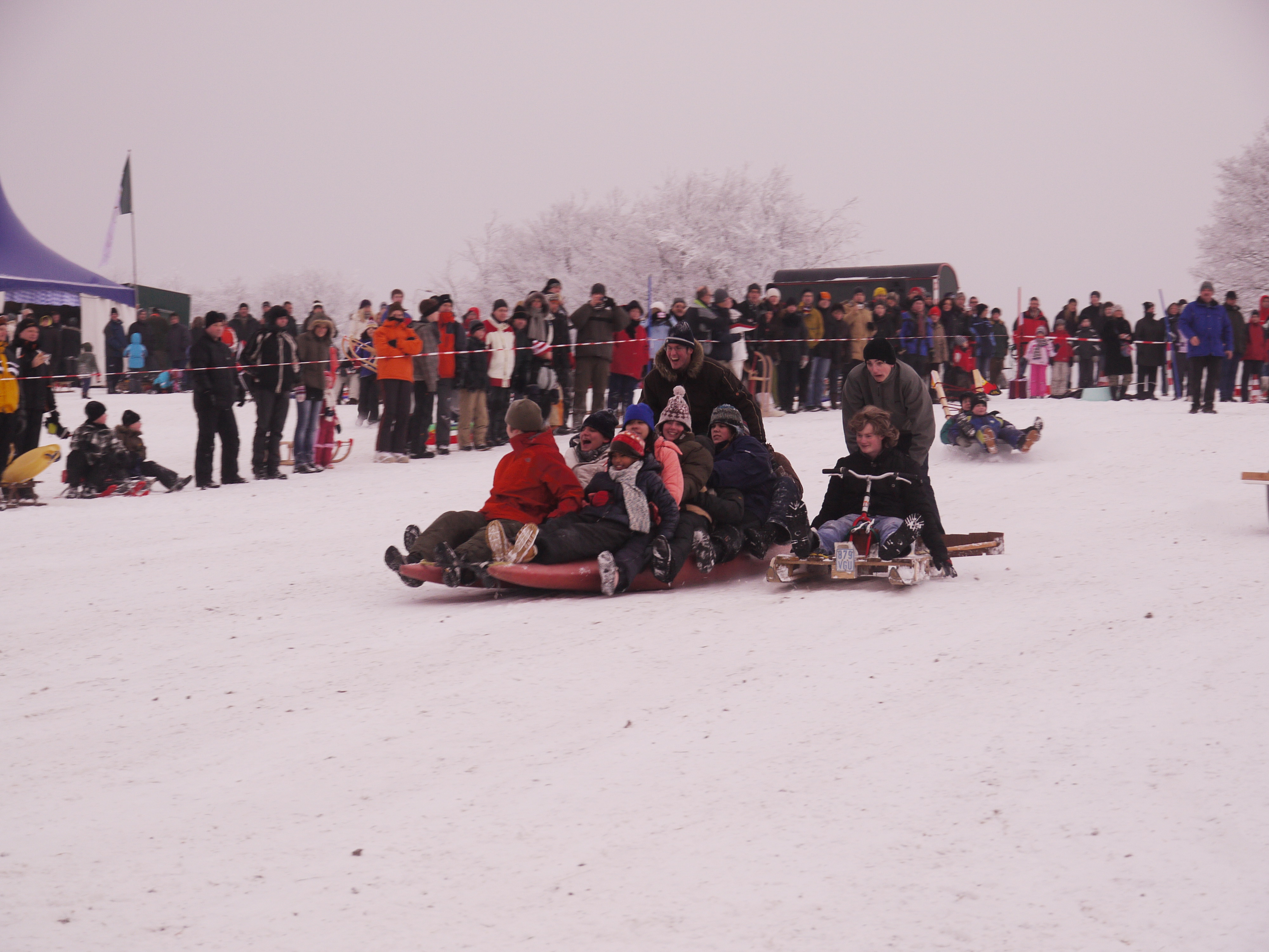 Beim großen Rodelwettbewerb kamen abenteuerliche Gefährte an den Start. Zu der Riesengaudi am Rodelhang waren fast 2000 Besucher gekommen.
