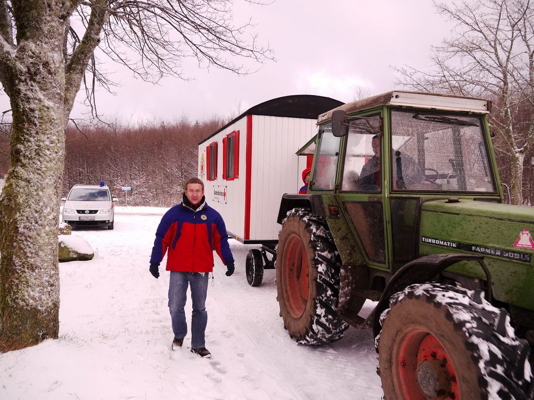 Hellenthal - Am vergangenen Wochenende haben die Rotkreuz-Bergwachtler aus dem Kreis Euskirchen wieder ihre Wachstation im Udenbrether Wintersportgebiet eingerichtet. Mit der Unterstützung des Rescheider Rotkreuz-Rettungsdienstmitarbeiters Achim Steffens, der mit einem Traktor den Bauwagen an den Skihang bugsierte, war die Arbeit schnell vollbracht.
