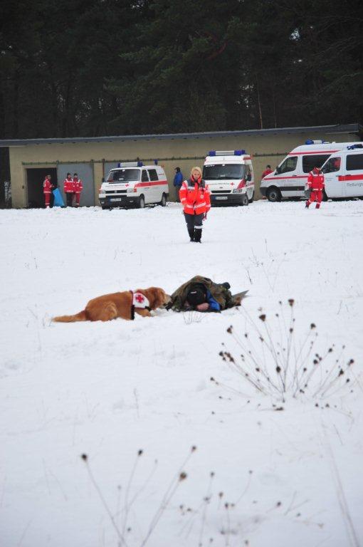 Am vergangenen Samstag war es dann endlich soweit: Die Rettungshundestaffel Kall des Kreises Euskirchen traf sich zum ersten gemeinsamen Training mit der Rotkreuz-Rettungshundestaffel aus Aachen auf dem Gelände der ehemaligen NS-Ordensburg Vogelsang. Eis und Schnee hielten die Hundeführer nicht davon ab, um 10.30 Uhr in den gemeinsamen Ausbildungstag zu starten. Auch die befreundete Staffel aus Porz kam in der Vergangenheit nach Vogelsang, um dort mit uns gemeinsam zu trainieren.
