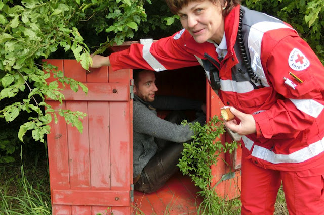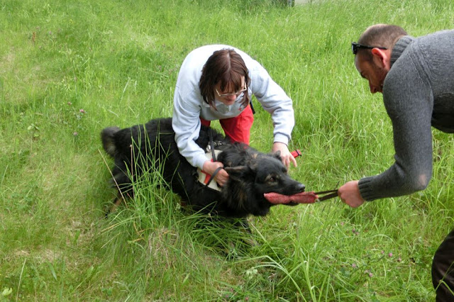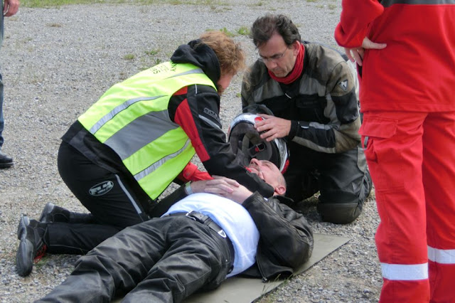 Durch eine gut durchdachte Gruppenaufteilung kamen alle auf ihre Kosten. Die Biker standen den Hunden als Versteckpersonen zur Verfügung und erhielten im Gegenzug eine Erste Hilfe Auffrischung mit Schwerpunkt Motorradunfälle.