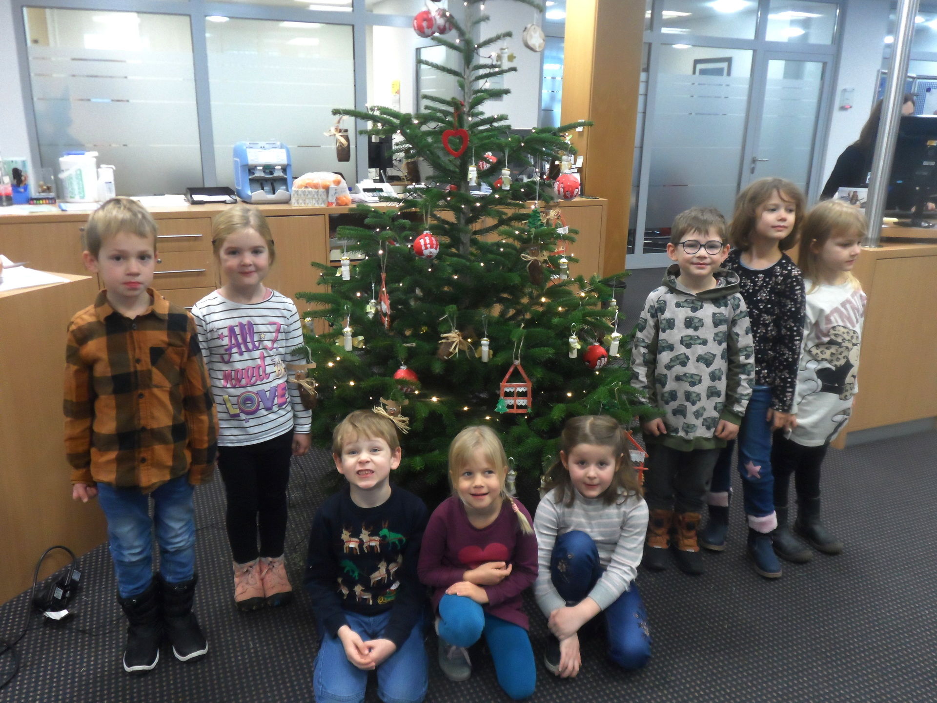 Kids der DRK-Kita „Kastanienlaube“ Ripsdorf schmückten den Weihnachtsbaum der VR-Bank Nordeifel eG in Blankenheim – Nikolaus brachte Geschenke