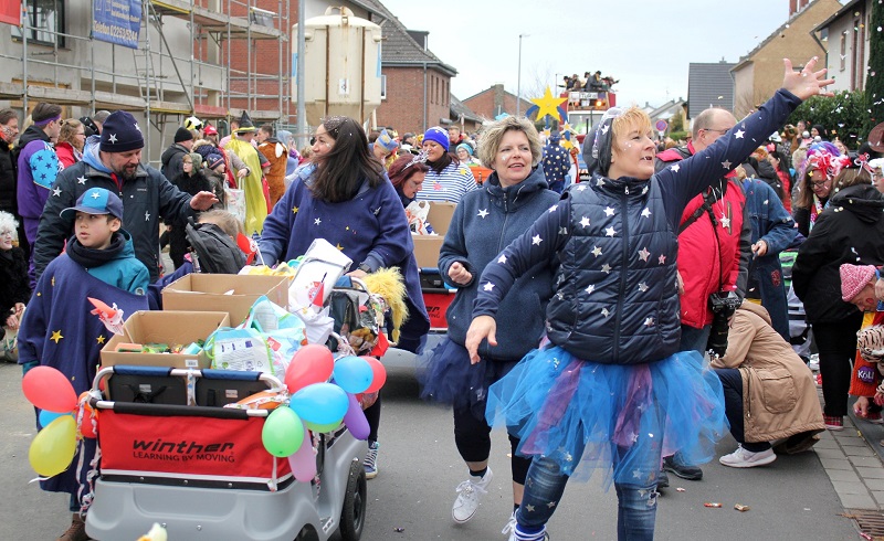Weilerswist – Einer kollektiven Ohnmacht anheimgefallen sind die Weilerswister Jecken bei ihrem Karnevalszug zum Glück nicht. Doch trotzdem sahen sie alle minutenlang Sterne. Der Grund war einfach: Fünf Kindertagesstätten unter der Trägerschaft des Deutschen Roten Kreuzes waren mit sage und schreibe 190 Teilnehmern (Kinder, Eltern und Erzieher-Teams) dabei – das waren noch einmal 60 Personen mehr als im Vorjahr. Die Gruppe war damit sogar größer als die der Gesamtschule, die ansonsten mit den meisten Leuten unterwegs ist.