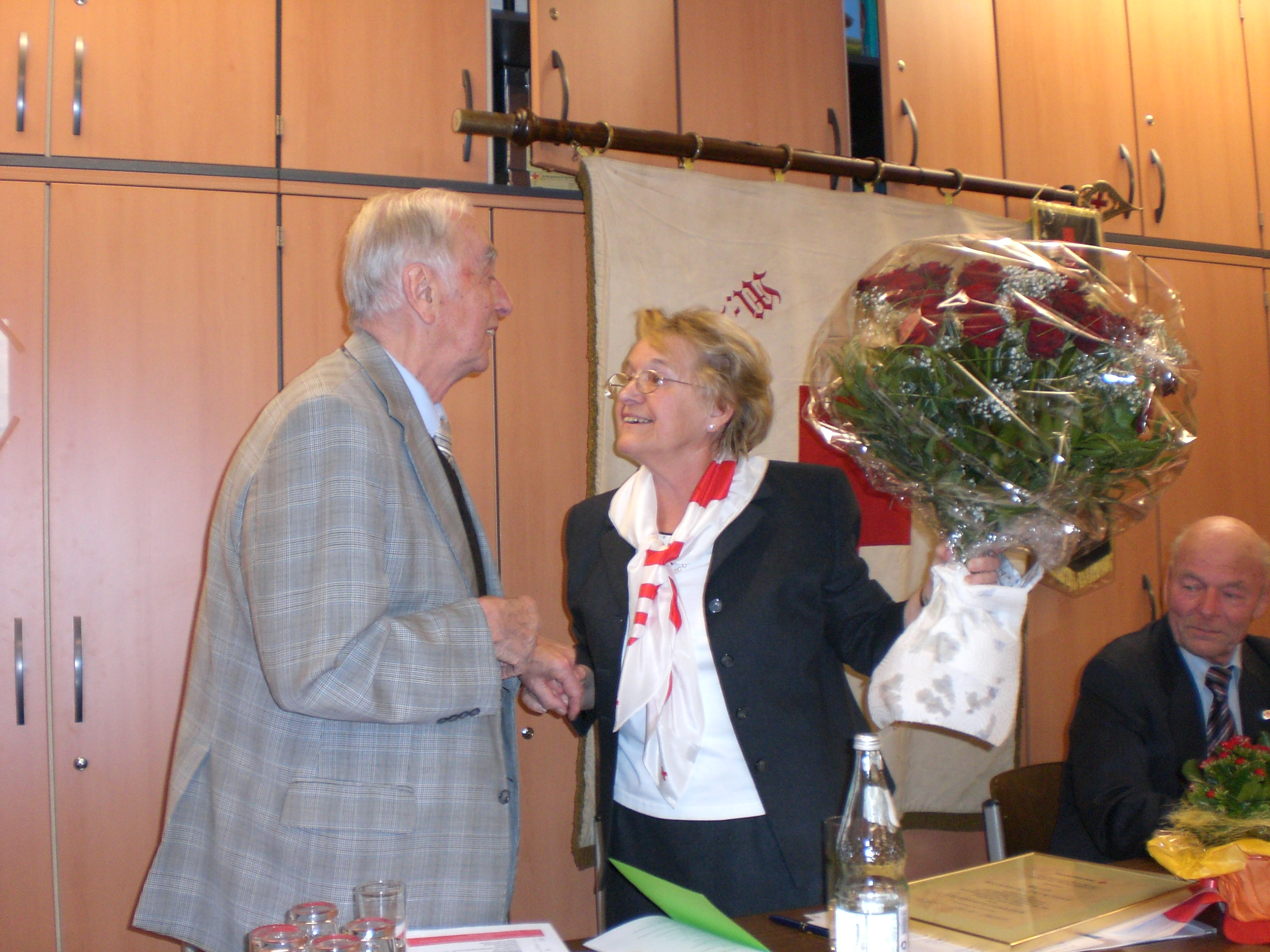 Gerda Hirth hatt den Vorsitz des Ortsvereins von Bernhard Thywissen übernommen, der nach über 40 Jahren aktiver Arbeit als Vorsitzender seinen Posten leider aus Gesundheitsgründen abgegeben hatte. "Bernhard Thywissen ist seit 1943 überzeugter Rotkreuzler und hat dem Ortsverein in seiner Amtszeit schon so oft aus manch schwerer Stunde geholfen", so Gerda Hirth.