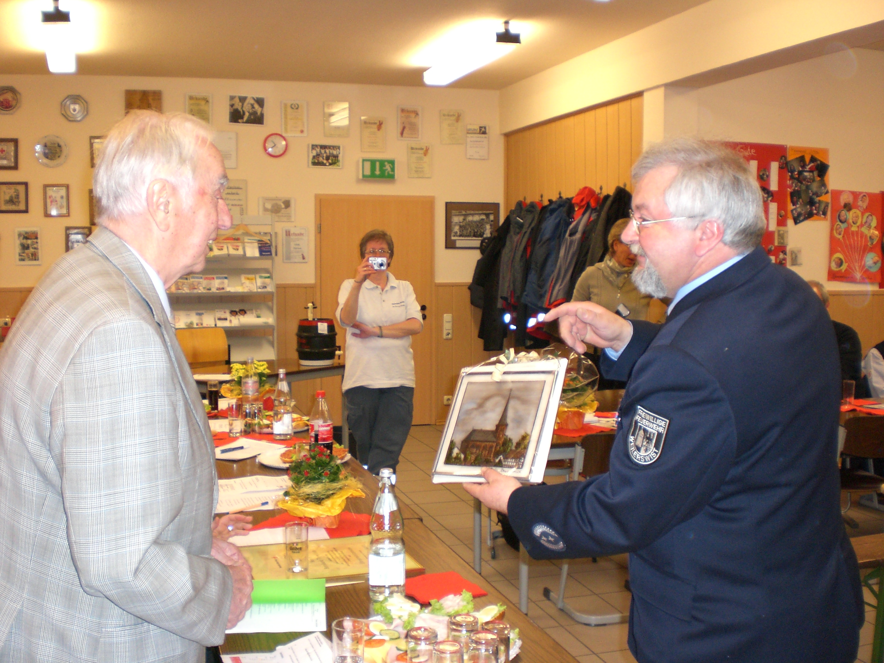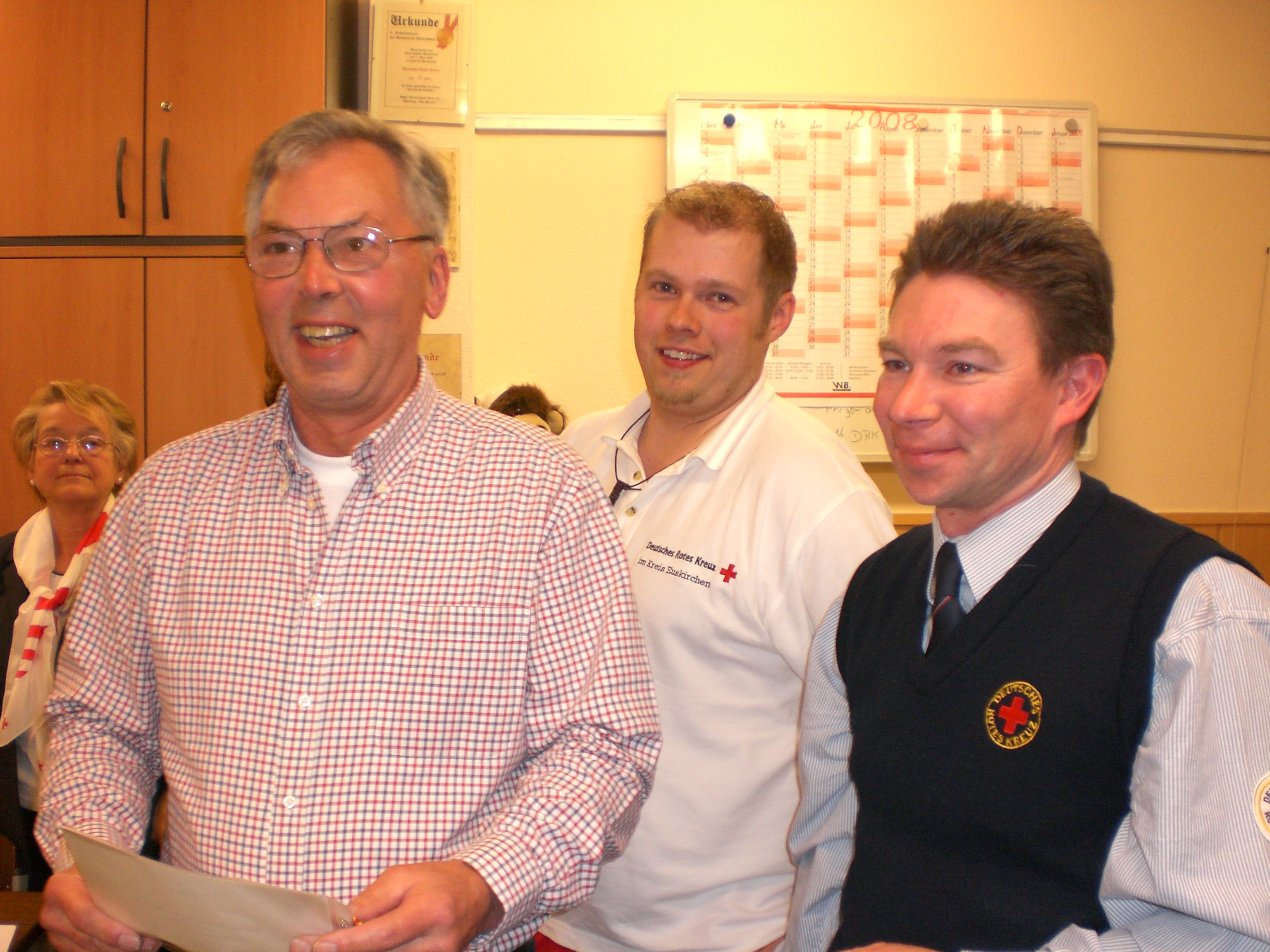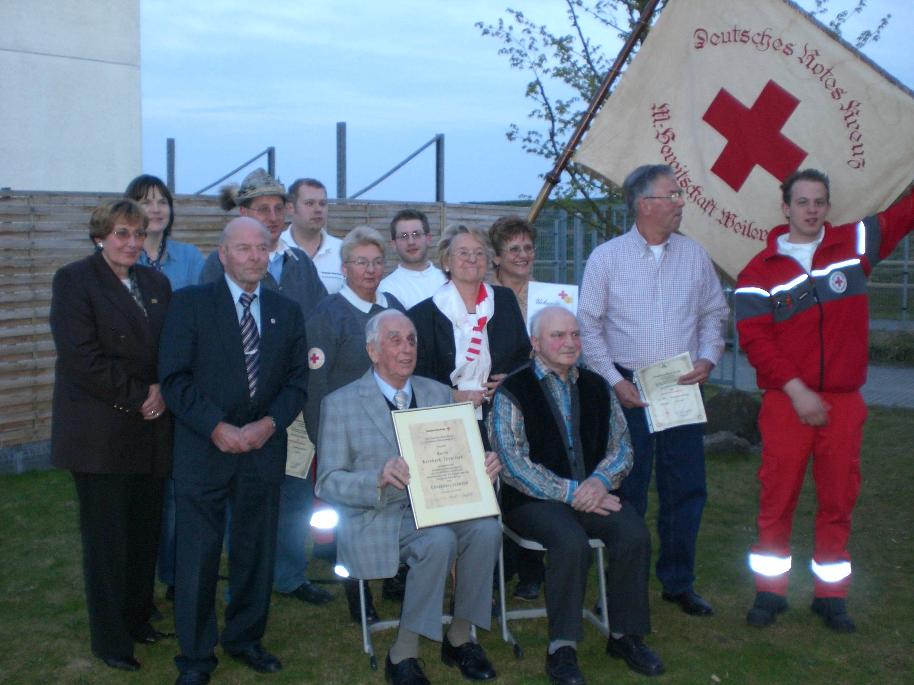 Als Dank für seinen aufopferungsvollen Einsatz für das Rote Kreuz in Weilerswist wurde Bernhard Thywissen zum Ehrenvorsitzenden des Ortsvereins ernannt. Gemeinschaftsleiter Dirk Rose und Gemeindebrandinspektor Peter Ditz, der Leiter der Freiwilligen Feuerwehr Weilerswist, schlossen sich den Gratulanten an.