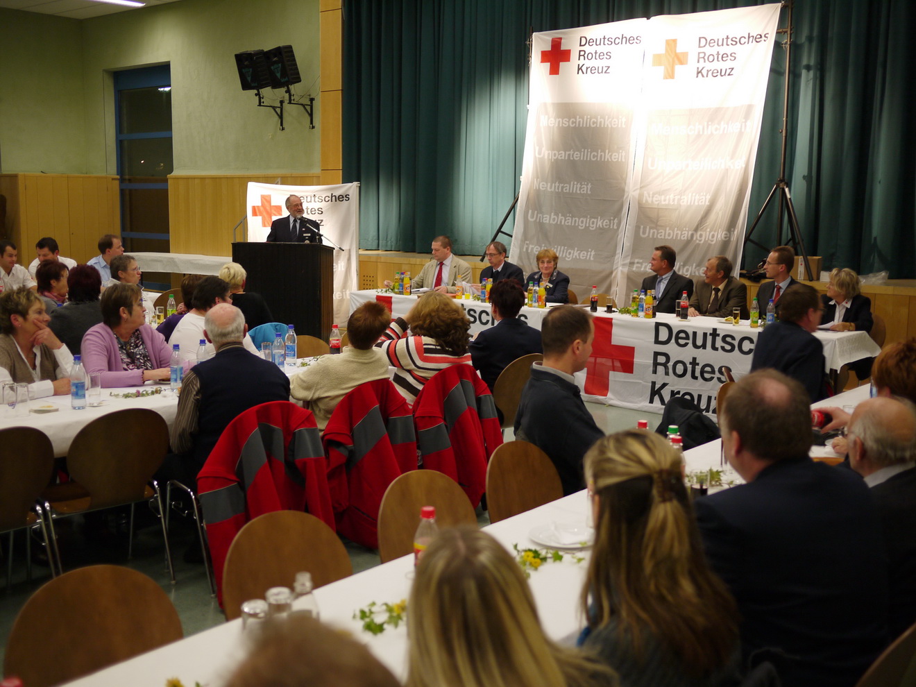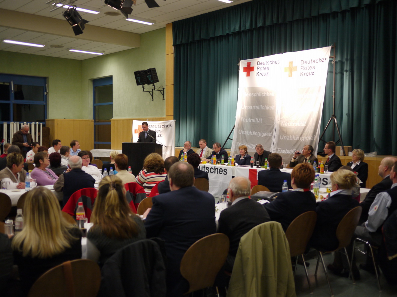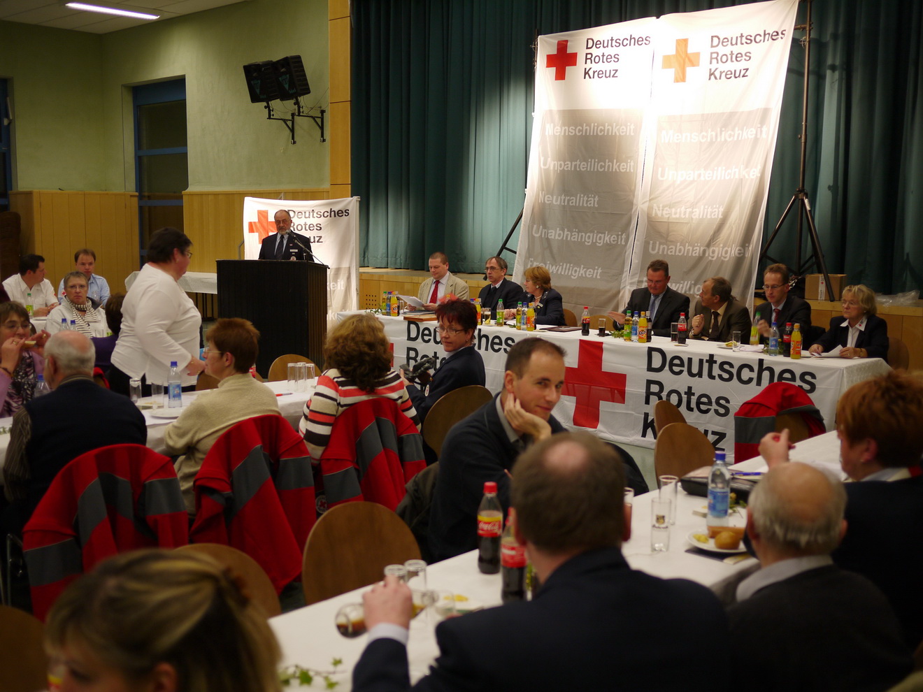 Aus fast allen Kommunen des Kreises Euskirchen waren die Delegierten zur Rotkreuz-Kreisversammlung nach Weilerswist gekommen. Bundestagsabgeordneter Detlef Seif, Landrat und Rotkreuz-Schirmherr Günter Rosenke, der Weilerswister Bürgermeister Peter Schlösser, der Schleidener Bürgermeister und Rotkreuz-Ortsvorsitzende Ralf Hergarten und Kreisbrandmeister Udo Crespin waren als prominente Gäste der Rotkreuzler im Kreis Euskirchen mit dabei.