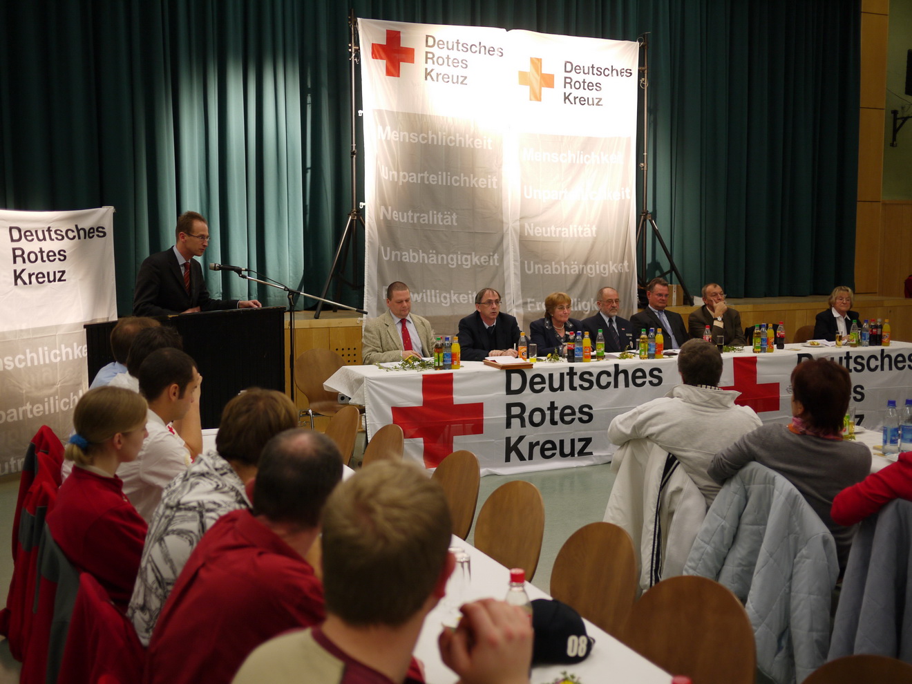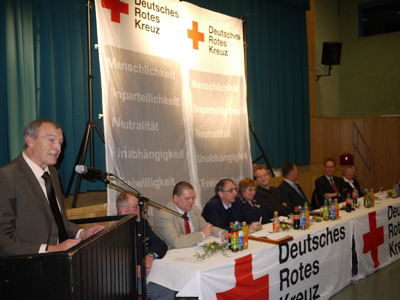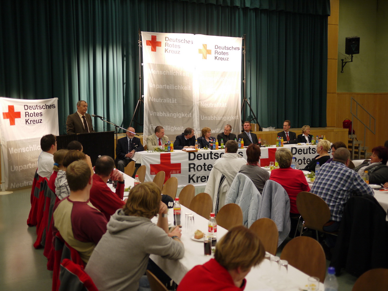 Aus fast allen Kommunen des Kreises Euskirchen waren die Delegierten zur Rotkreuz-Kreisversammlung nach Weilerswist gekommen. Bundestagsabgeordneter Detlef Seif, Landrat und Rotkreuz-Schirmherr Günter Rosenke, der Weilerswister Bürgermeister Peter Schlösser, der Schleidener Bürgermeister und Rotkreuz-Ortsvorsitzende Ralf Hergarten und Kreisbrandmeister Udo Crespin waren als prominente Gäste der Rotkreuzler im Kreis Euskirchen mit dabei.