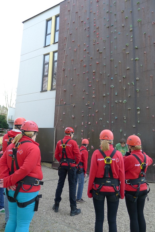 Weilerswist - Am Samstag den 20.04.2013 war das JRK Weilerswist im Niedrigseilgarten in Walberberg und hat nach einigen Vertrauensübungen und Gruppenaufgaben die Kletterwand erklommen.