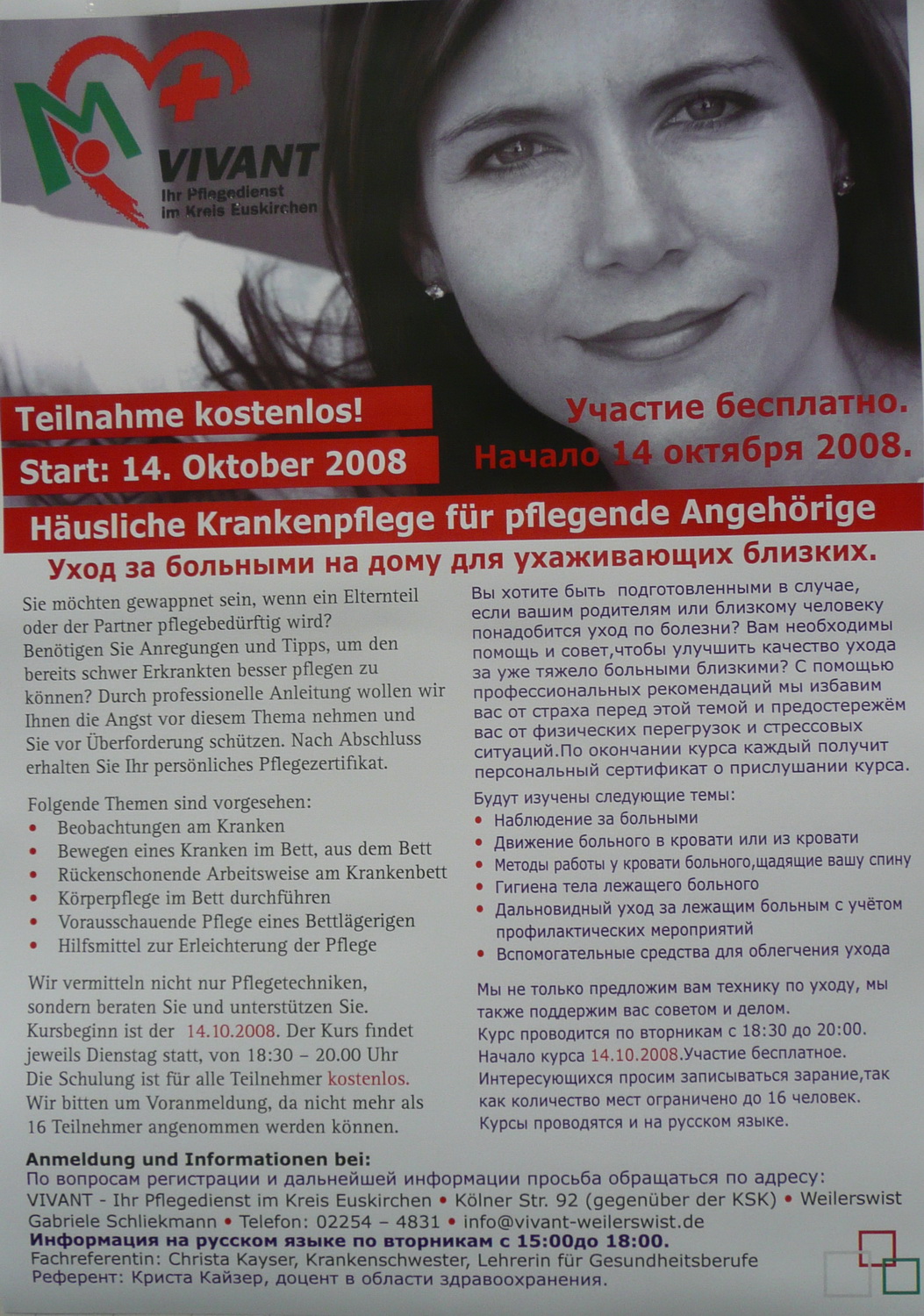 Die "Vivant gGmbH - Ihr Pflegedienst" im Kreis Euskirchen ist eine Kooperation des Kreiskrankenhauses Mechernich mit den Kreisverbänden des Roten Kreuzes und der Arbeiterwohlfahrt.