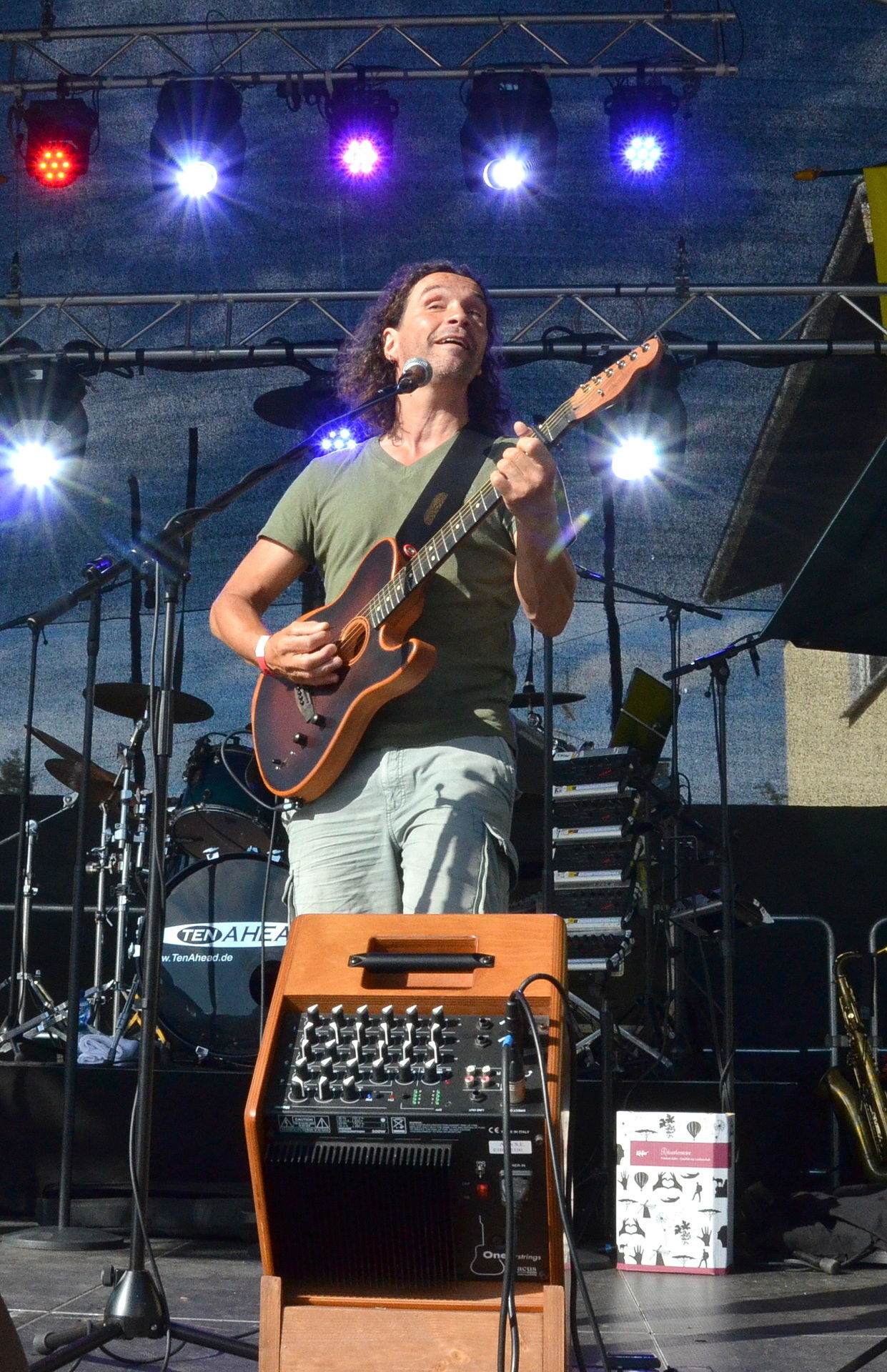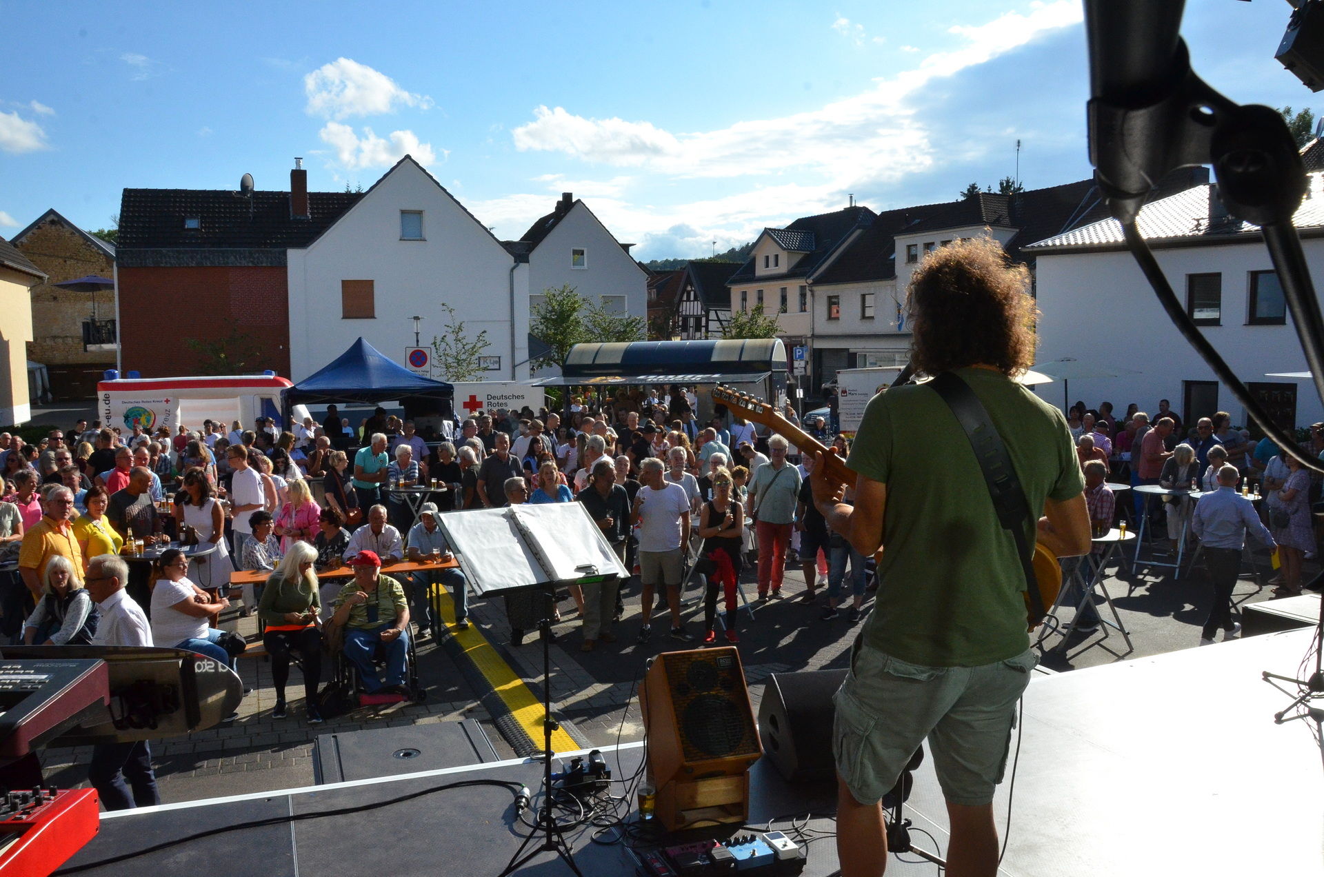 An tosendem Applaus war die Begeisterung des Publikums deutlich zu erkennen, der Platz irgendwann gerappelt voll und bester Stimmung. Bei der zwölfköpfigen Band sang zwischendurch auch Promigast Mirko Bäumer, Frontmann der kölschen Band „Bläck Fööss“, mit.